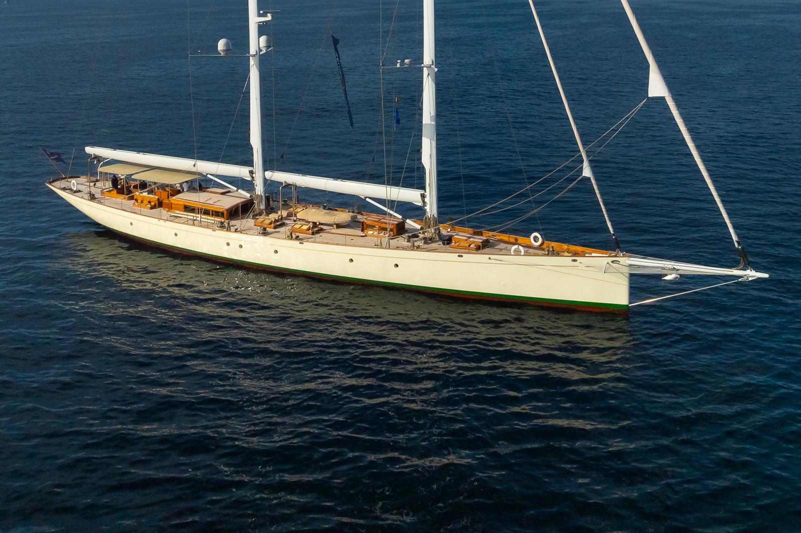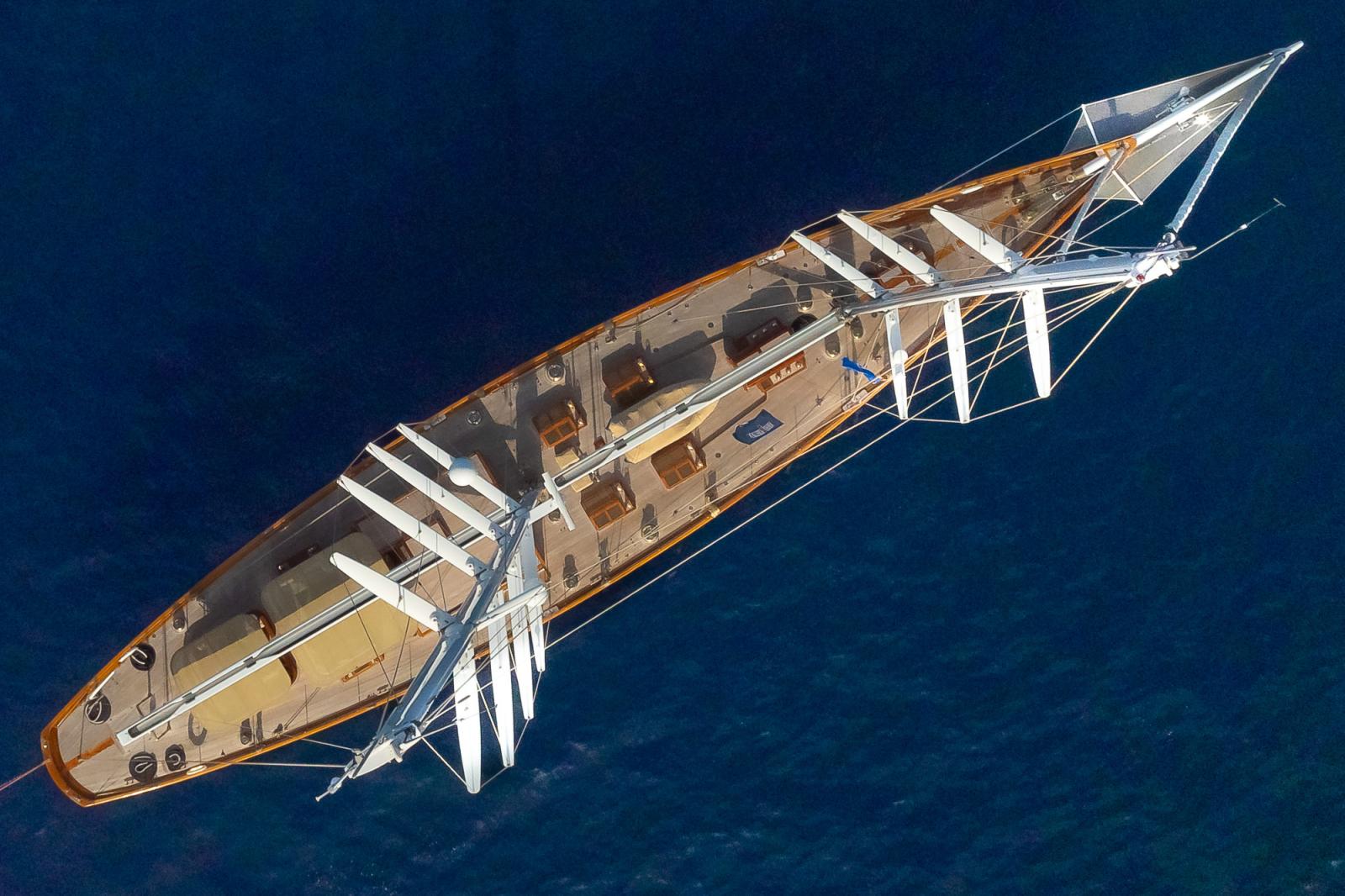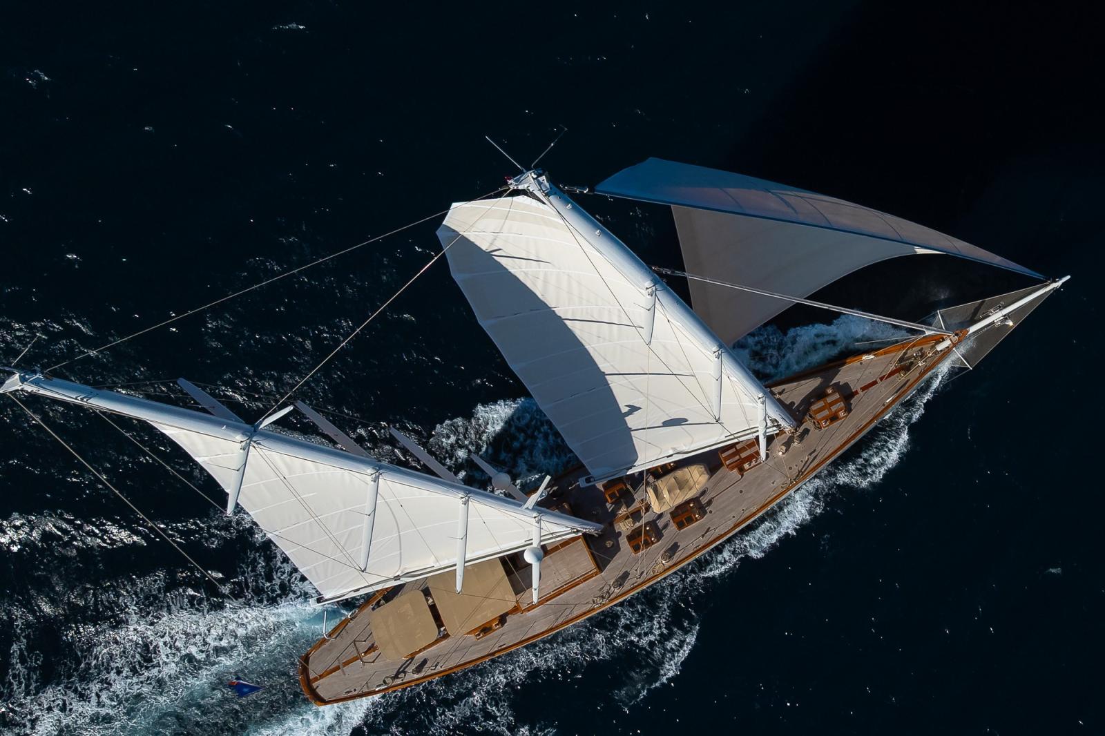 Son gréement à deux mâts est impressionnant : le grand mât culmine à près de 50 mètres au-dessus de la ligne de flottaison, tandis que le mât de misaine s'élève à 46 mètres. À cela s'ajoute un ensemble de voiles de haute technologie qui fait toute la différence. Le superyacht affiche près de 2 000 mètres carrés de surface de voile une fois toutes voiles dehors. La grand-voile à elle seule mesure 407 m², complétée par une trinquette, un génois et un foc. Cet arsenal est encore renforcé par un spinnaker asymétrique de 1 032 m² et un tourmentin de 55 m², parés à affronter toutes les conditions de mer.