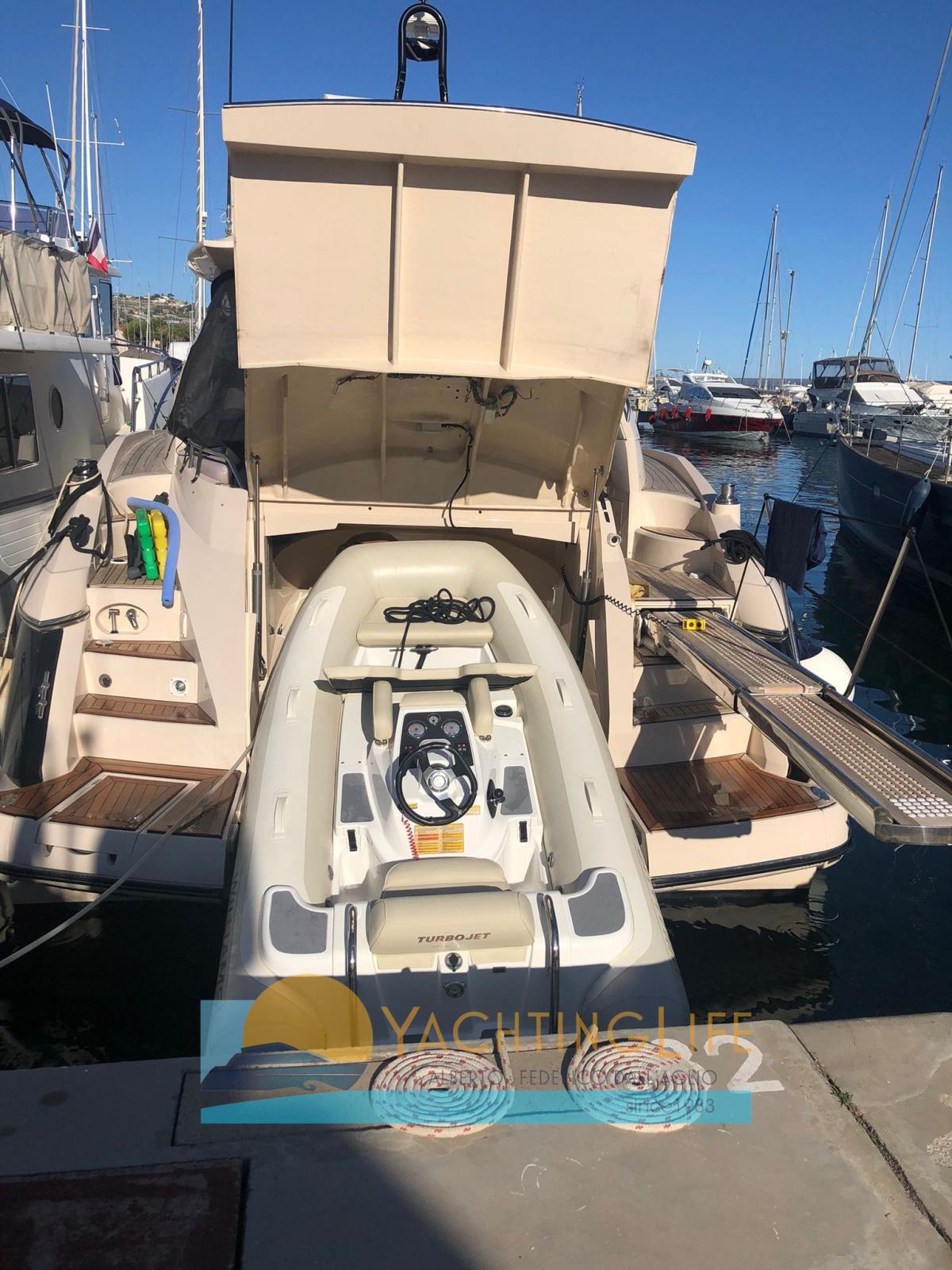 Alarme moteur, Alarme de pompe de cale, Eau sous pression, Passavant en teck, Douche de cockpit, Phare de poursuite, Flaps hydrauliques, Garage à annexe, Hard top, Extincteur(s) fixe(s), Indicateurs de flaps, Lavabo dans le cockpit, Éclairage de courtoisie, Spots sous-marins, Passerelle (idraulica), Plateforme arrière, Pompe de cale automatique, Porte latérale, Cockpit en teck, Prise de quai, Guindeau électrique, Echelle de bain, table de cockpit, Annexe (Williams 325), Corne, Winch électrique arrière.