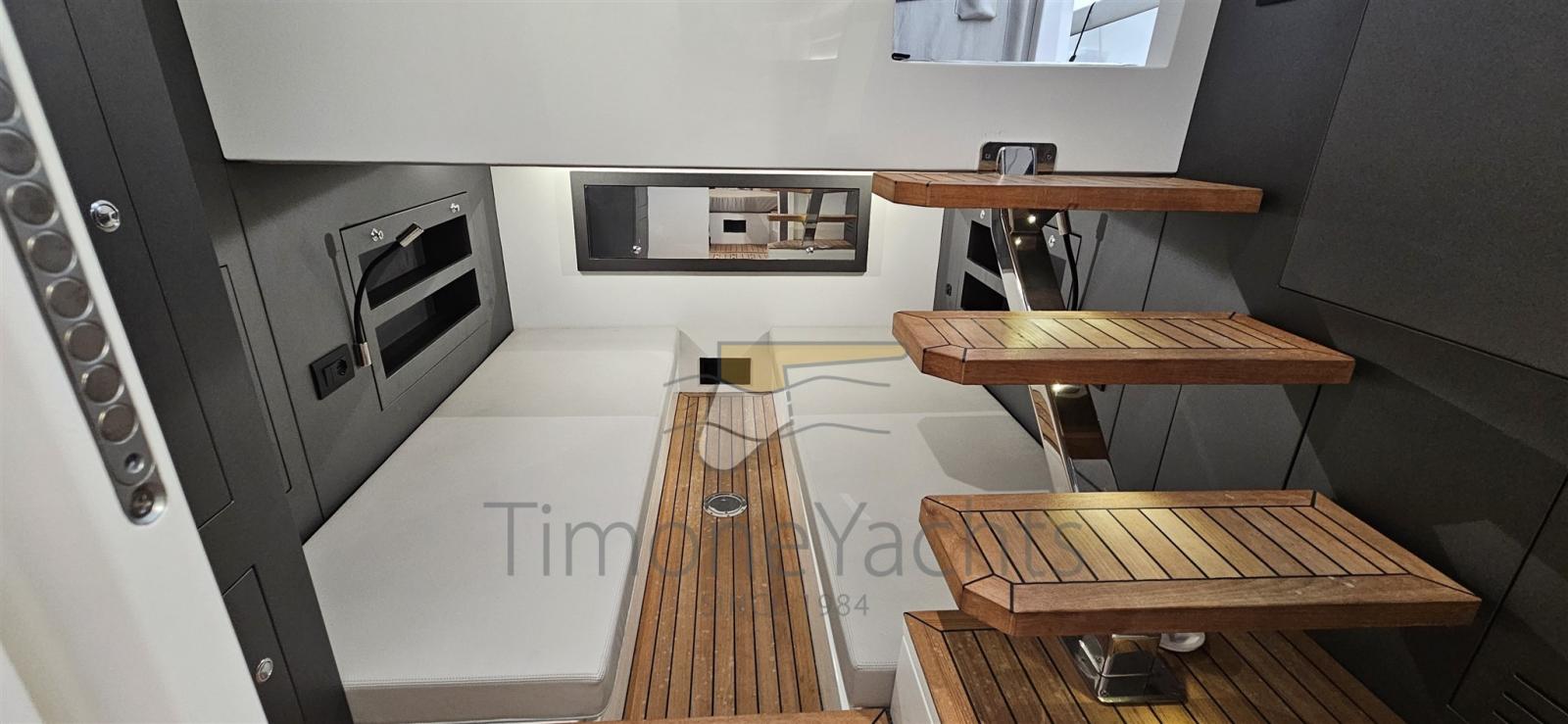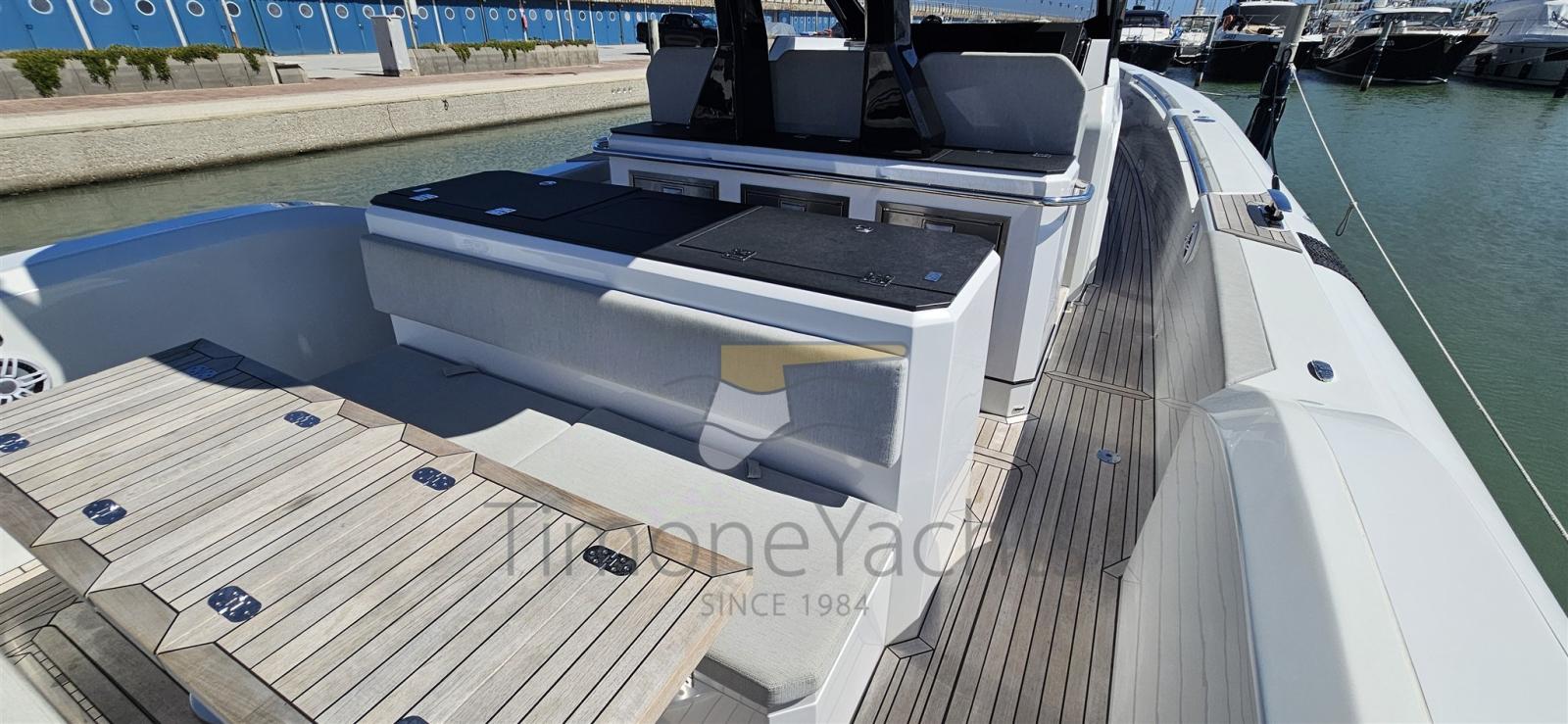 Le grand bain de soleil arrière offre confort et sécurité pour ceux qui veulent profiter pleinement de la mer. Le cockpit, qui peut être personnalisé en fonction des besoins du propriétaire, est idéal pour accueillir de nombreux invités avec un maximum de confort. Chaque détail est conçu pour maximiser le confort et la praticité à bord.