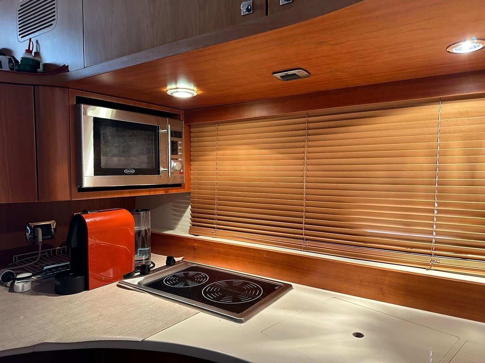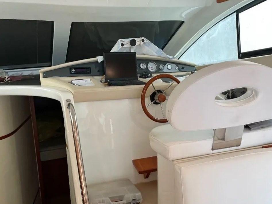 Alarme gaz, Alarme moteur, Alarme de pompe de cale, Eau sous pression, 5 Batteries, Douche de cockpit, Double barre à roue, Phare de poursuite, 2 Flaps hydrauliques, Passerelle (idraulica OPACMARE), Plateforme arrière, Pompe de cale automatique, Pompe de cale manuelle, Cockpit en teck, Prise de quai, Onduleur, Rollbar, Guindeau électrique, Echelle de bain, Système de filtration des eaux usées, table de cockpit.