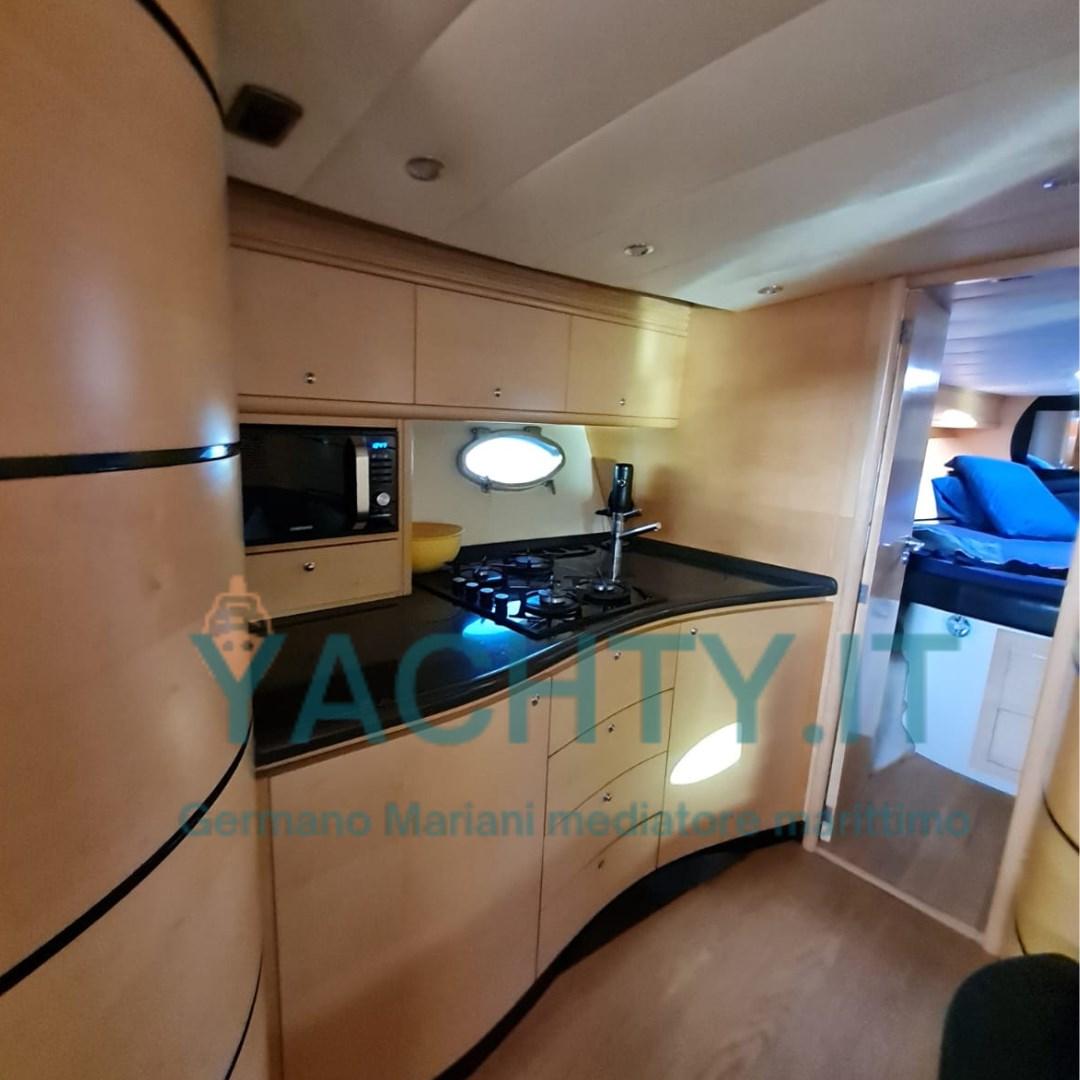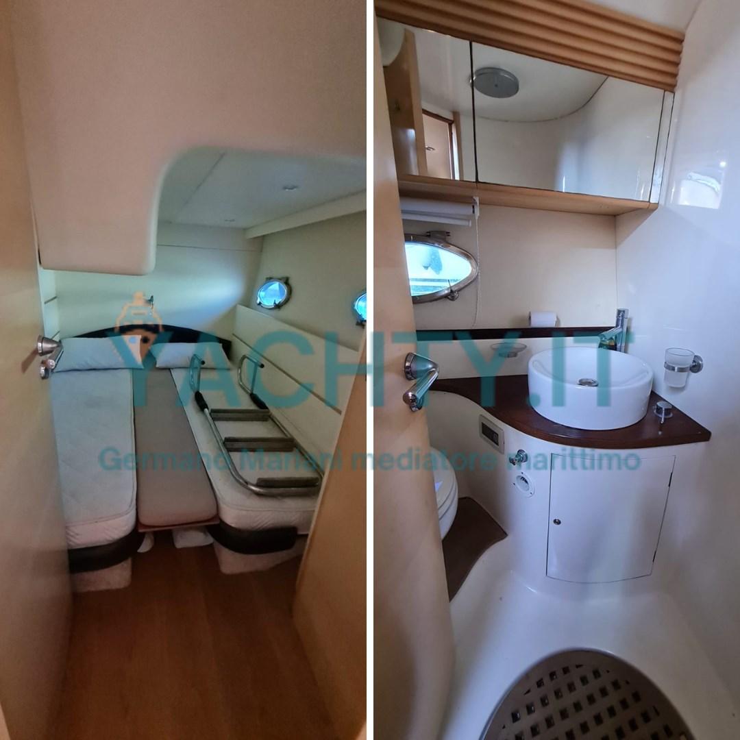 Disposition avec 3 cabines, 2 salles de bain, salle à manger, double cuisine (intérieur + extérieur). Tender de garage avec nouveaux pistons électriques, treuil électrique et compresseur dédié.