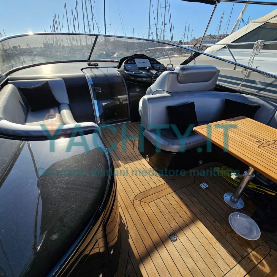 Eau sous pression, Câble d’alimentation à quai, Couleur spéciale, Douche de cockpit, Flaps électriques, Garage à annexe (completo di verricello e compressore per gommone), Extincteur(s) fixe(s), Lavage de chaine, Lavabo dans le cockpit, Éclairage de courtoisie, Moteur hors-bord pour annexe (Mercury 3.5), Passerelle (idraulica), Plateforme arrière (con teak), Pompe de cale automatique, Pompe de cale manuelle, Cockpit en teck, Prise de quai, Rollbar, Guindeau électrique, Echelle de bain, table de cockpit, Annexe, Corne.