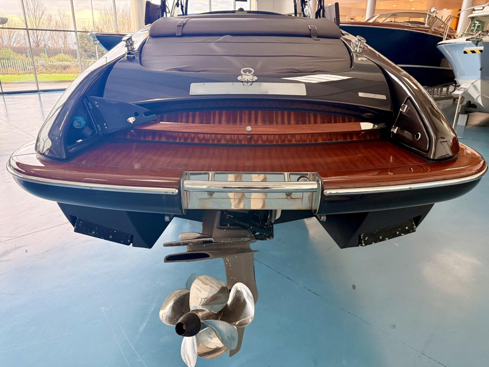 Ancre (Con catena), Ouverture du compartiment moteur électrique, Taquets pliants, Câble d’alimentation à quai, Douche de cockpit, Propulseur d'étrave (3HP), Phare de poursuite, Ber (Colore nero), Éclairage de courtoisie, Pompe de cale automatique, Prise de quai, Guindeau électrique, Echelle de bain, Stabilisateurs, table de cockpit.