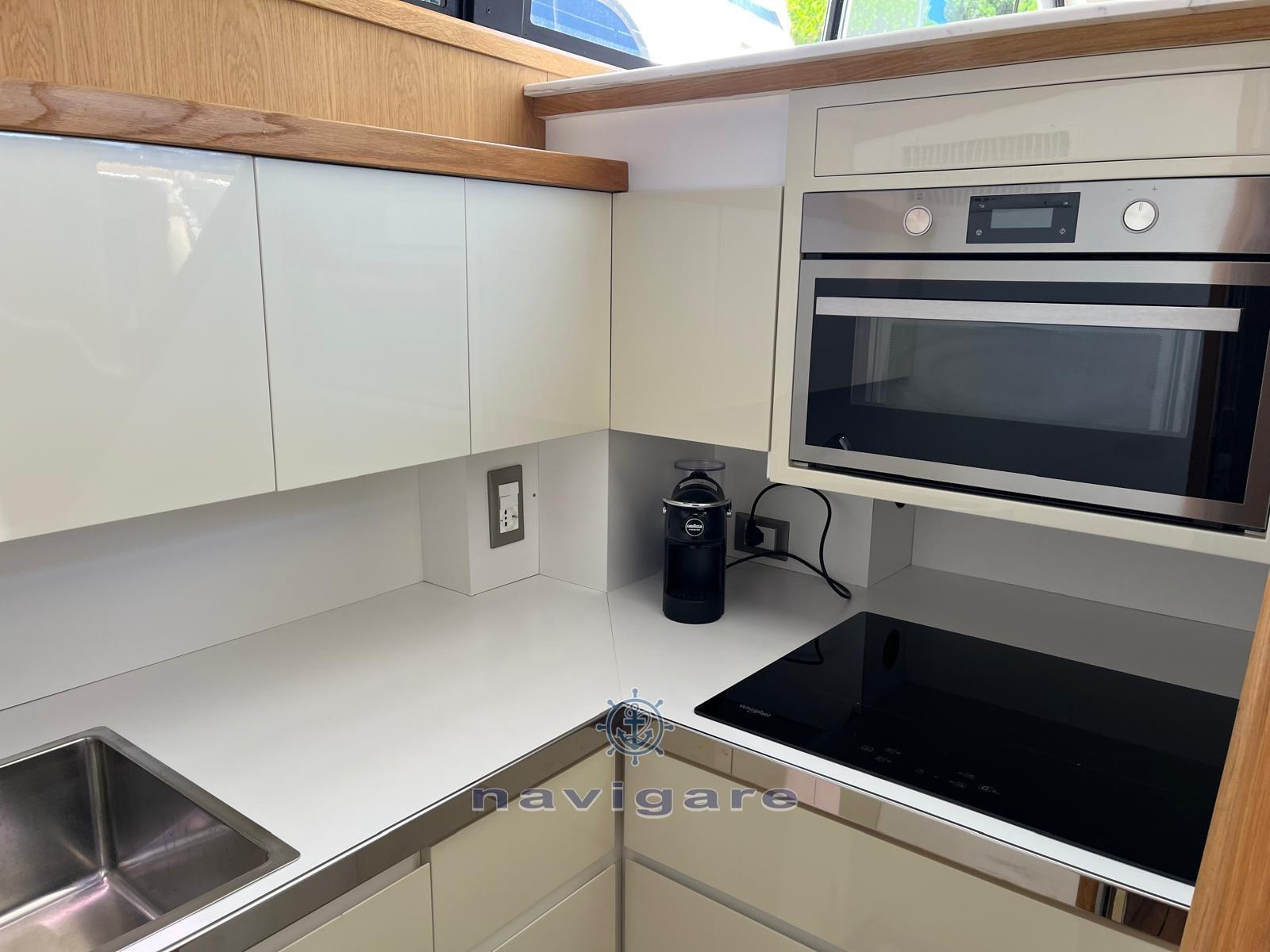 à l’ancre, caractéristiques principales, passerelle hydraulique, dernière génération de Raymarine, propulseur d’étrave, réfrigérateur en acier avec machine à glace