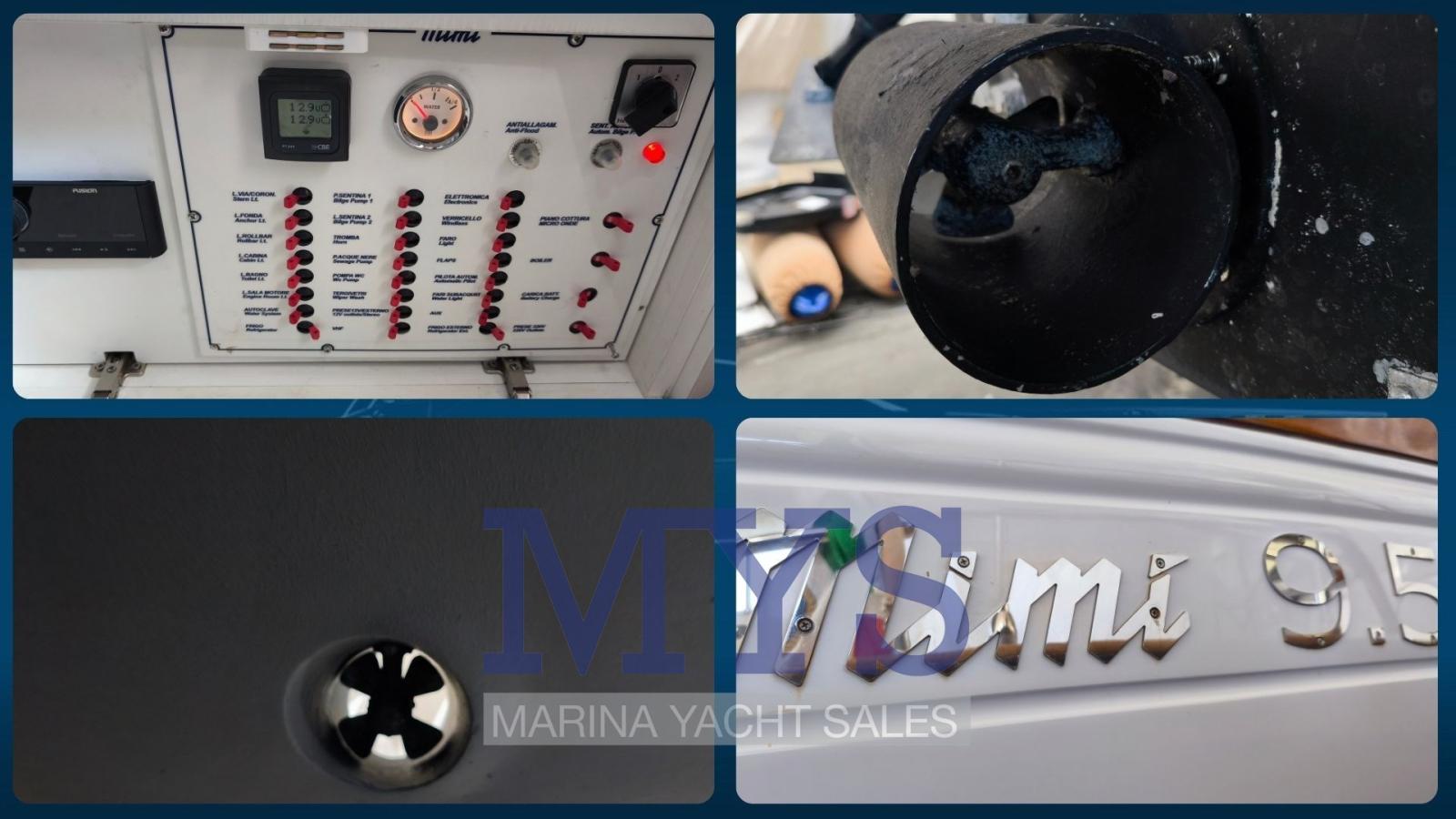 Indicateur d'angle de barre, Commande électrique, Ordinateur fixe de bord, Compteur de chaîne, DSC VHF (Garmin), Sondeur pêche (Garmin 9), GPS (Garmin 9), Joystick (per i Flaps), Cartes et guides, Moniteur de consommation, Siège copilote.
