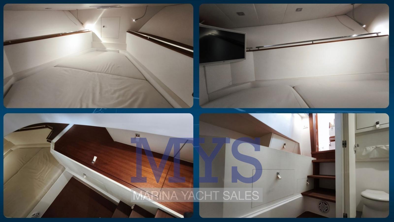 Sellerie complète, Coussins arrieres, Coussin avant, sellerie de cockpit, Taud de console, Rideaux (di poppa con pali in carbonio).