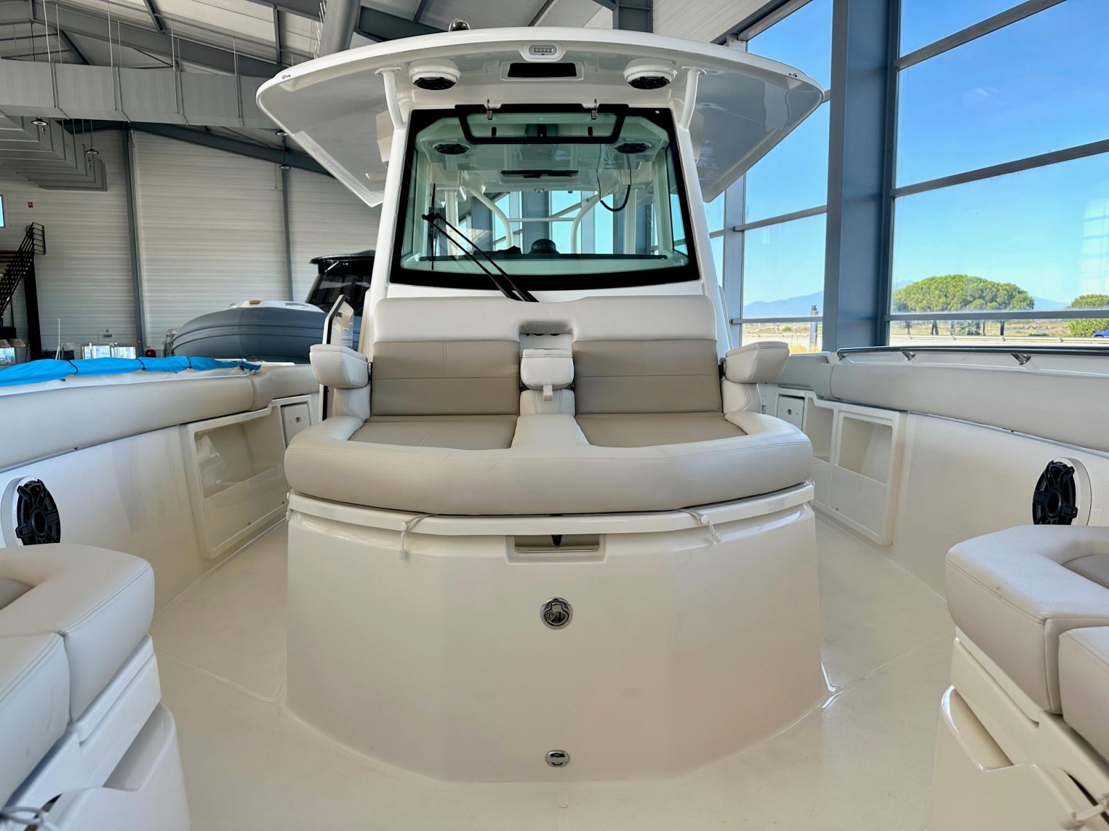 Le BOSTON WHALER 360 Outrage devient une référence absolue dans l’univers des fishing boats à console centrale. Conçu avec une attention minutieuse aux détails, il combine design audacieux, confort exceptionnel, et polyvalence inégalée, tout en offrant une navigation à la fois sportive et sécurisante.