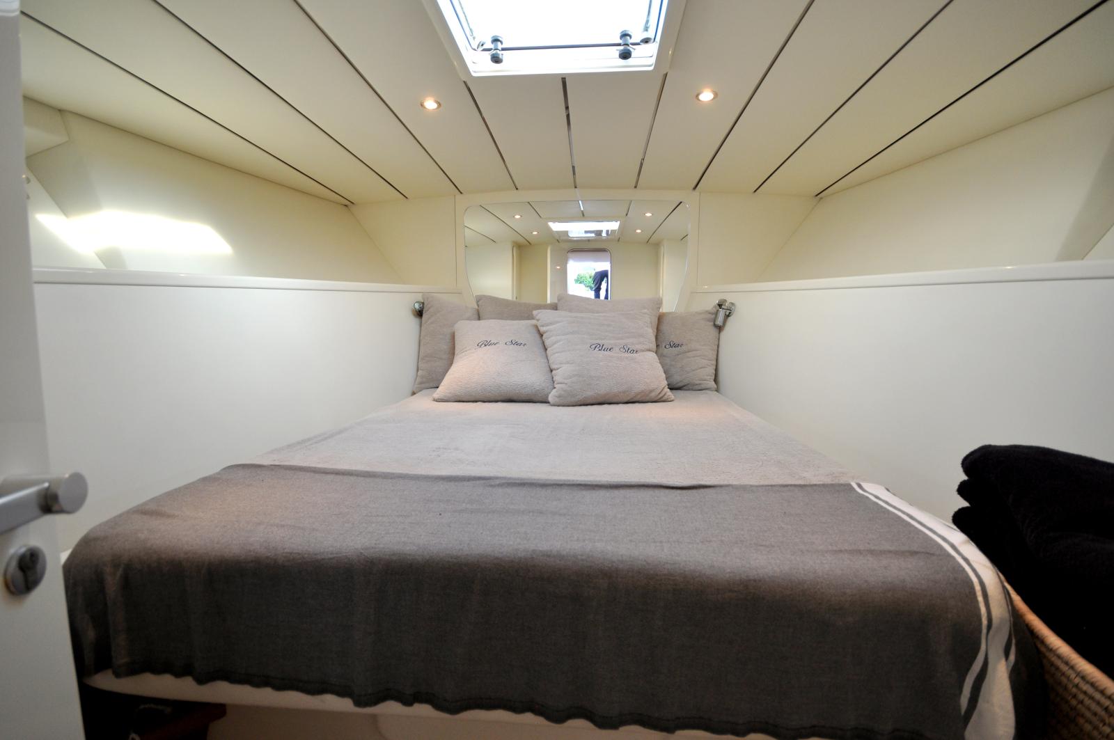 Le cockpit spacieux offre un bel espace de vie extérieur, parfaitement adapté à la détente et aux moments de convivialité en mer. À l’intérieur, le bateau propose un aménagement fonctionnel avec une cabine confortable, un espace salon et une salle d’eau, permettant d’envisager également des escapades de courte durée.