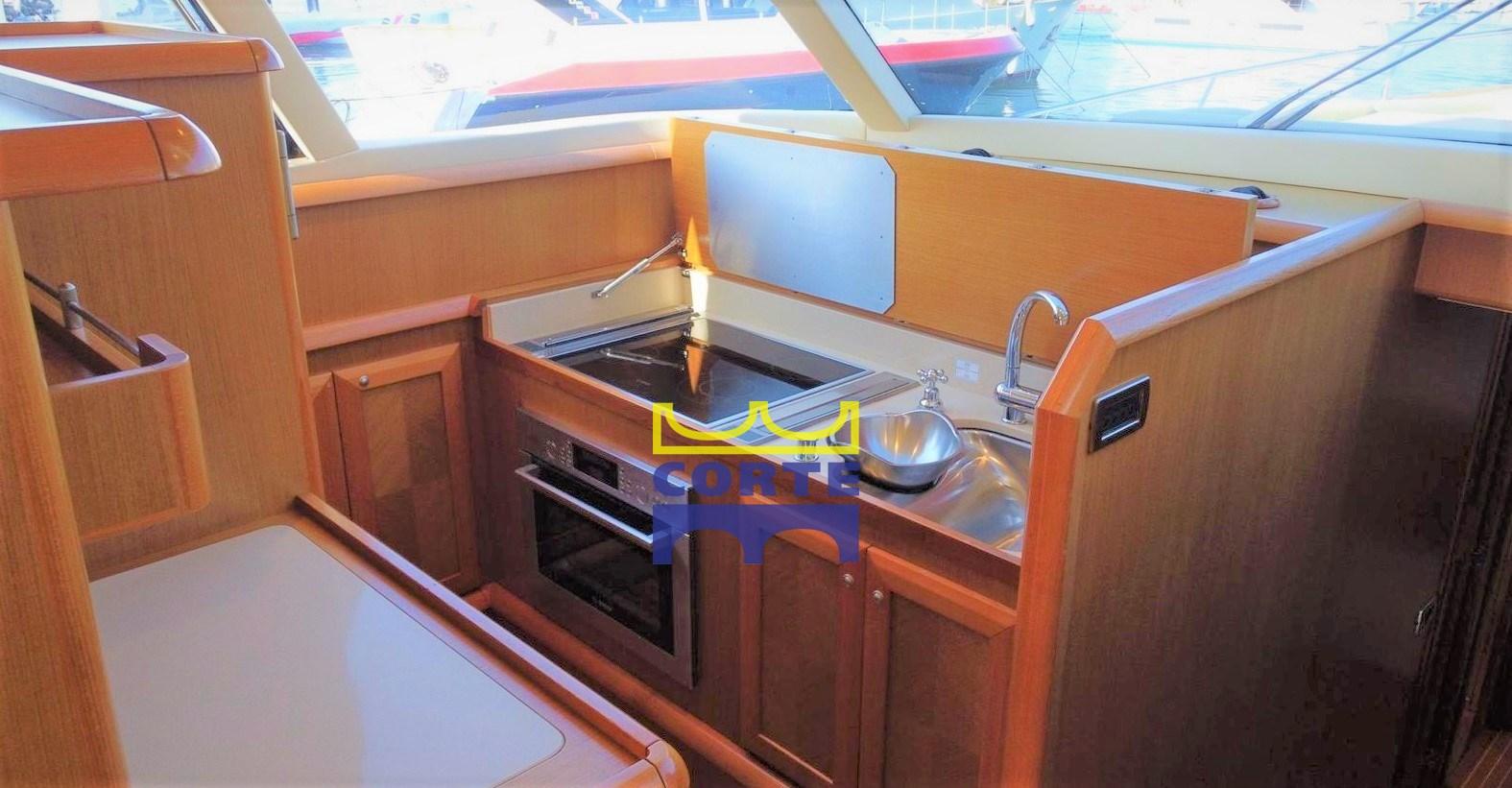BBQ/ Grill, Ballon d'eau chaude (elettrico-scambiatore), Coffre-fort, Air Conditionné (30000 BTU/h), Dessalinisateur (170 litri ora), Cuve à eaux noires, 2 Convertisseur (1500 e 2500 w), Plancher intérieur en bois (salone, cucina, corridoio e bagni), Prises interieures 12v, Prises interieures 220v, Réservoir d'eau noire, 2 Caméra vidéo (pozzetto e sala motori), Toilettes électriques.