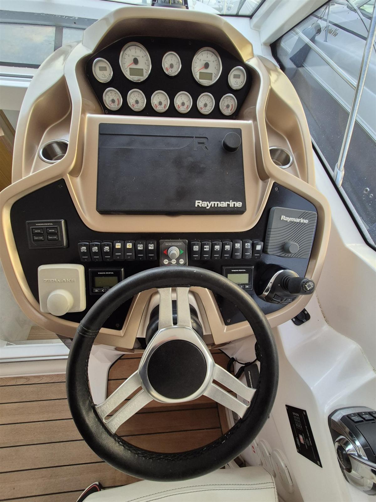 Commande électrique, DSC VHF (Raymarine), Joystick (Volvo Penta), Pilote automatique (Raymarine), Lecteur de cartes (Raymarine), Panneau de commande, Instruments de mesure pour moteurs.