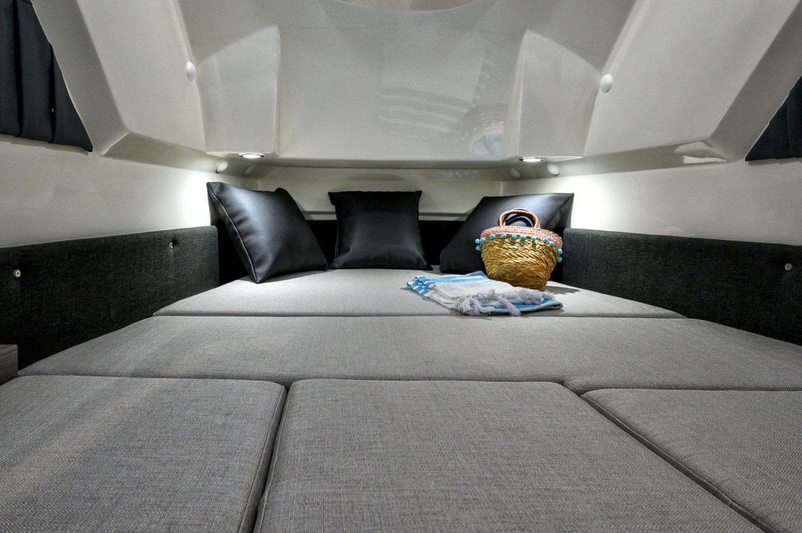 Console haut de gamme avec un équipement complet de cabine avec mobilier, mobilier et coussins