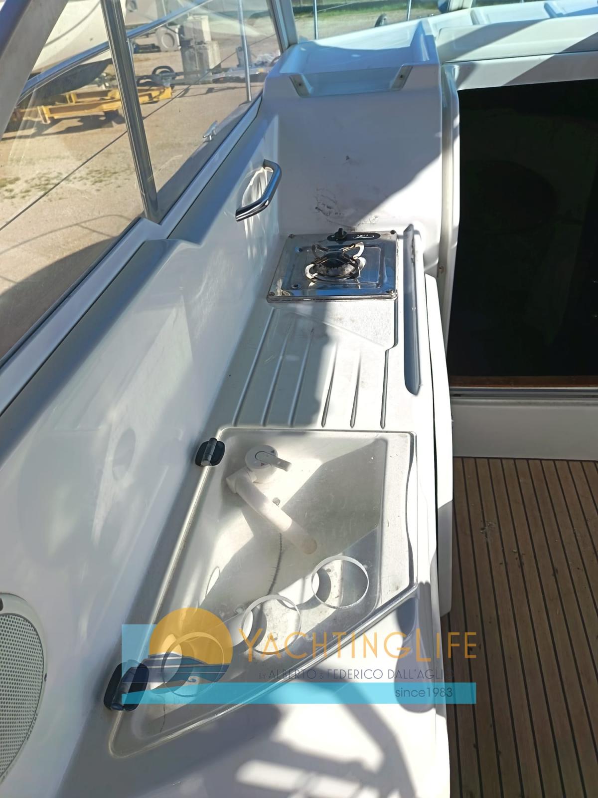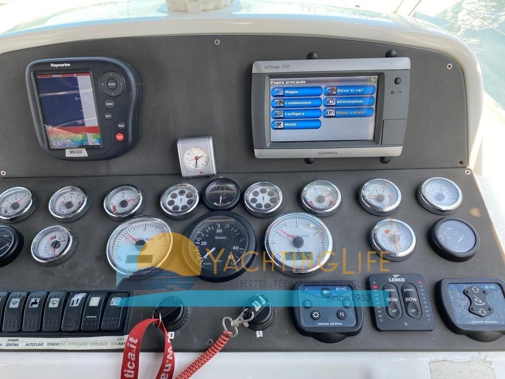 Alarme moteur, Ouverture du compartiment moteur électrique, Câble d’alimentation à quai, Flaps hydrauliques, Hard top, Indicateurs de flaps, Lavabo dans le cockpit, Éclairage de courtoisie, Défenses, Passerelle (idraulica), Plateforme arrière, Pompe de cale automatique, Cockpit en teck, Prise de quai, Guindeau électrique, Echelle de bain, table de cockpit, Table pliante de salon.