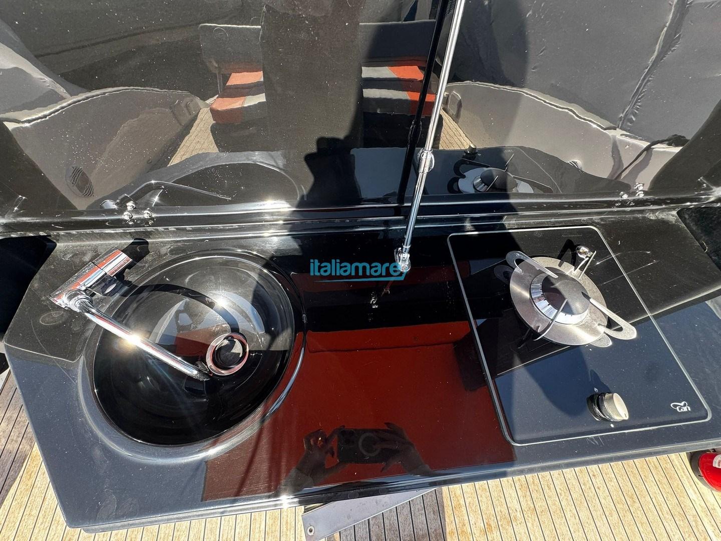 Alarme moteur, Eau sous pression, Douche de cockpit, Lavabo dans le cockpit, Éclairage de courtoisie, Plateforme arrière (in teak), Pompe de cale manuelle, Cockpit en teck, Prise de quai, Guindeau électrique, Echelle de bain, T-Top.