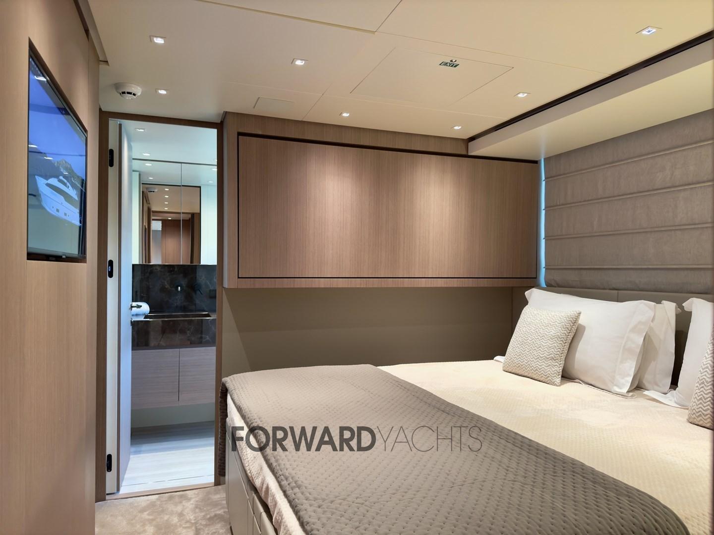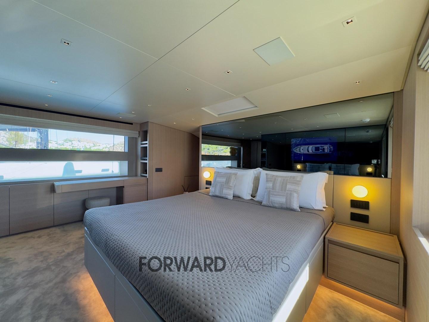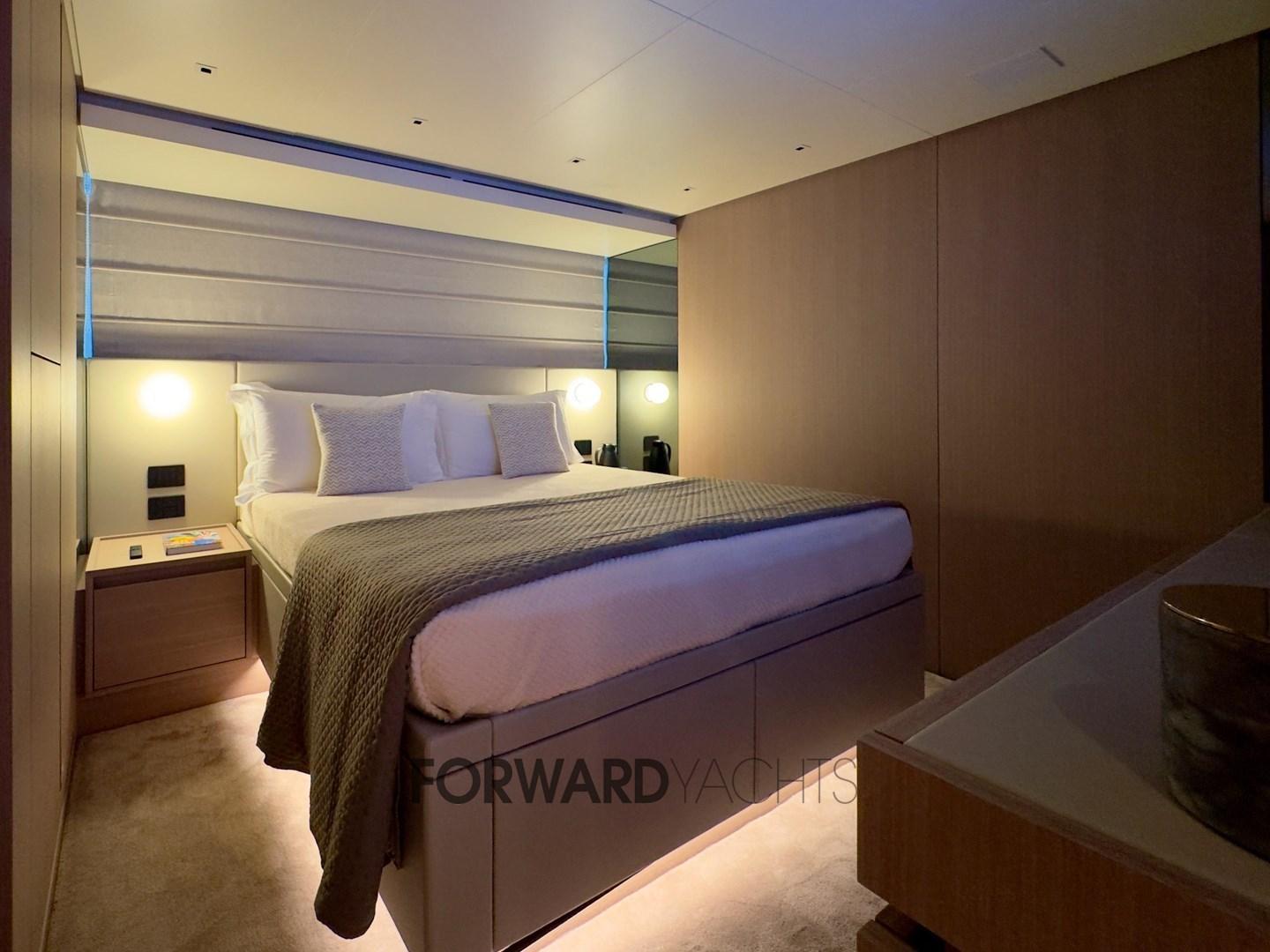 La suite du propriétaire, située sur le pont principal, dispose d’un grand dressing et d’un accès