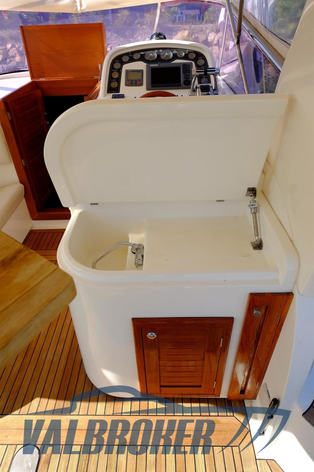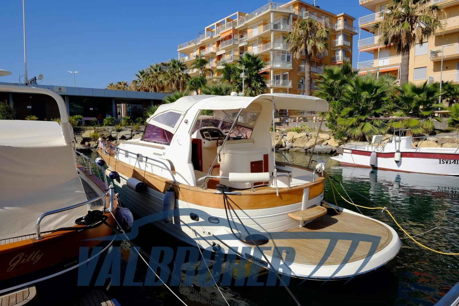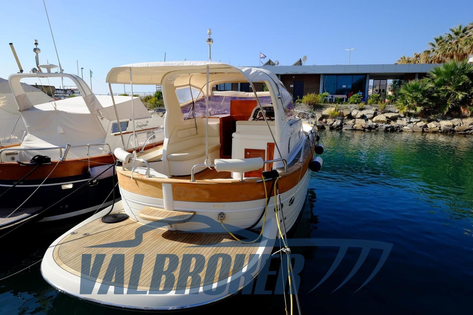 Apreamare 32 Confort, un bateau au style méditerranéen parfait, aux lignes extérieures douces et sinueuses, mais au caractère sportif. Bain de soleil confortable à l’avant, qui peut également être utilisé en naviguant, plate-forme de bain arrière allongée en teck. Sous le pont, grande cabine avant à espace ouvert, avec des espaces de rangement qui garantissent une excellente habitabilité. Propulsé par 2x Cummins QSD 2.8 220 Hp !! Transmission par ligne d’arbre. Bateau non plaqué. Vendu par nos soins au propriétaire actuel.