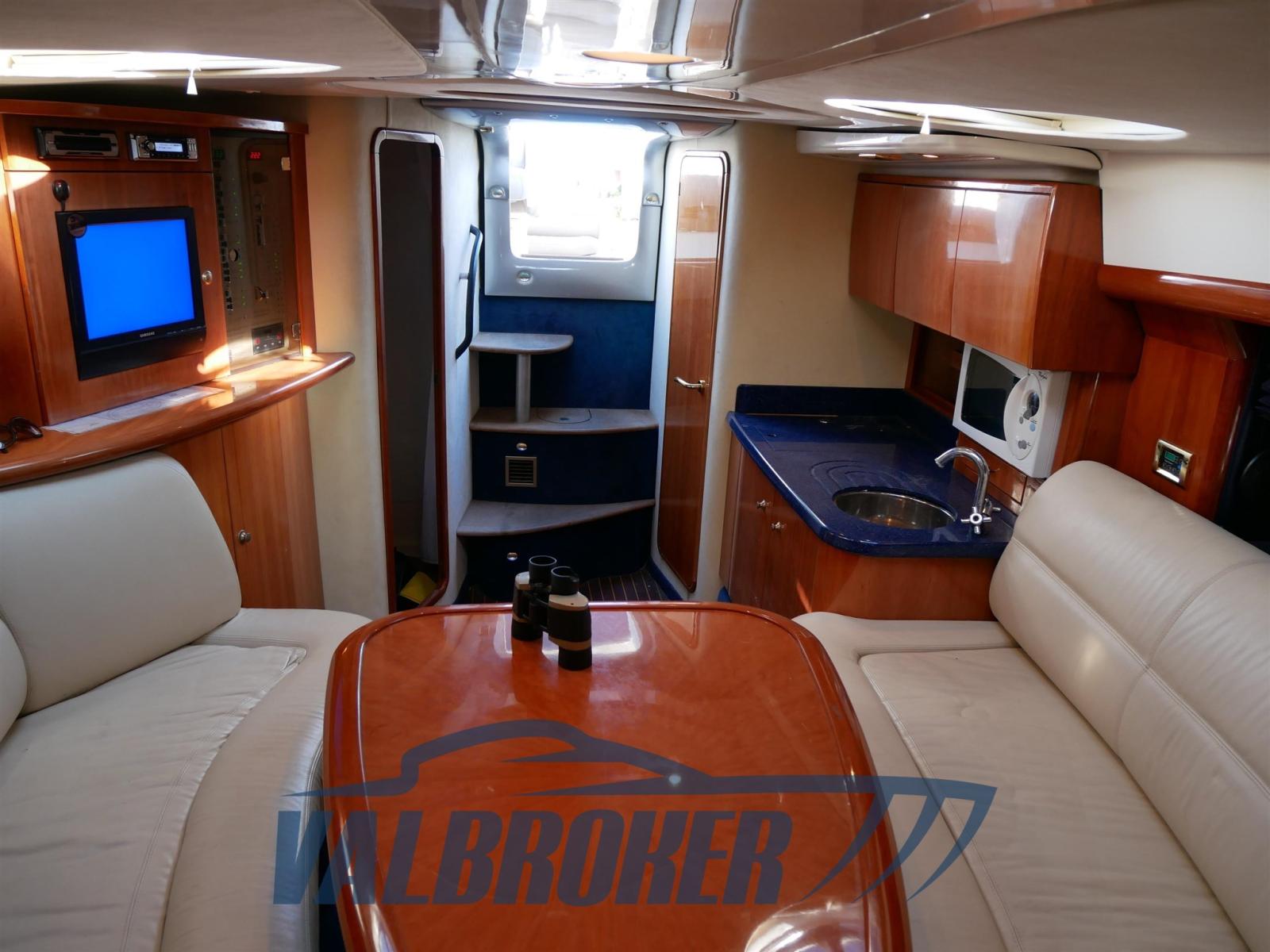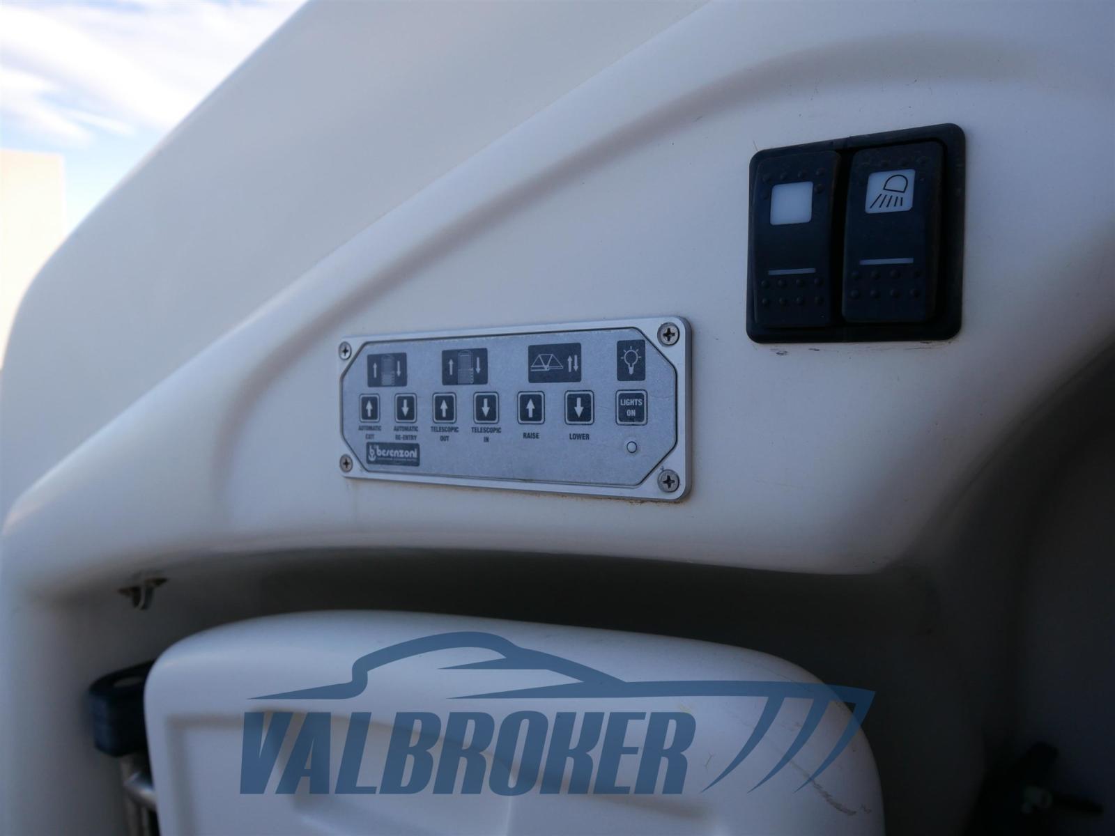 Eau sous pression, Douche de cockpit, Propulseur d'étrave (side power), Garage à annexe, Lavabo dans le cockpit, Éclairage de courtoisie, Passerelle (idraulica Besenzoni), Plateforme arrière (teak sintetico), Cockpit en teck (sintetico), Rollbar, Guindeau électrique (Lofrans), table de cockpit.