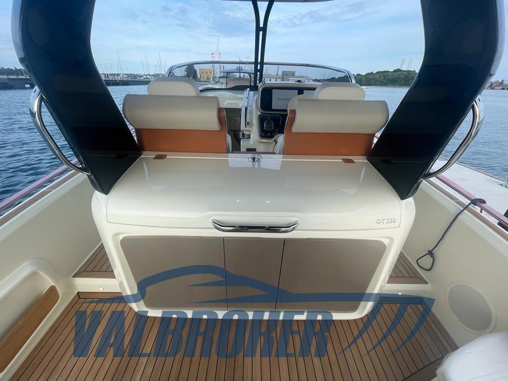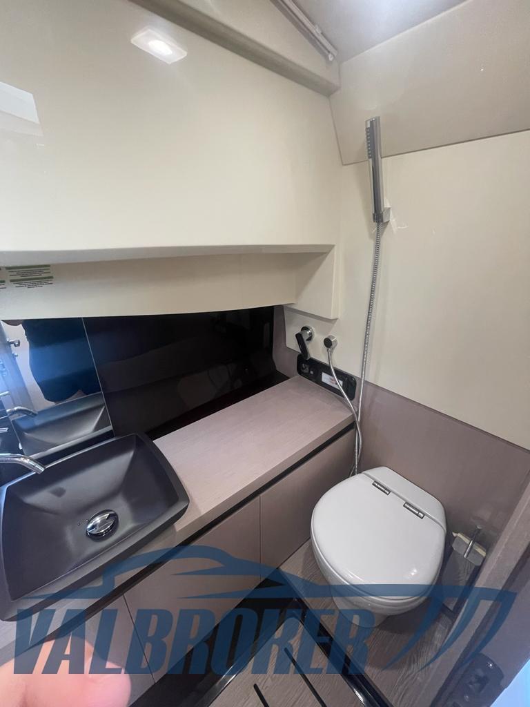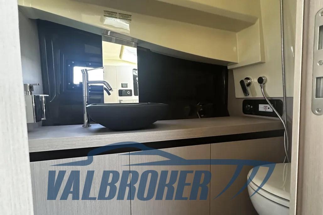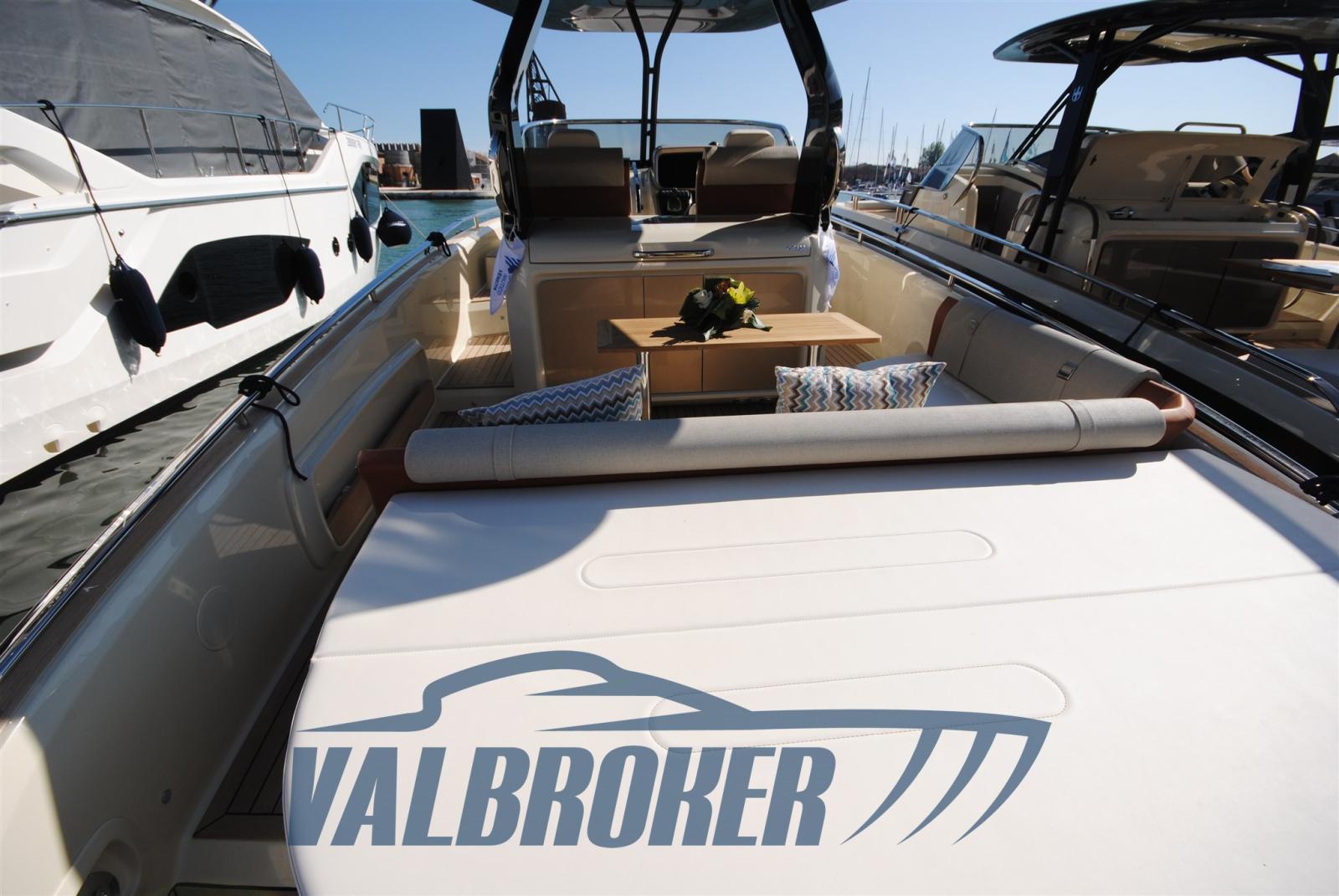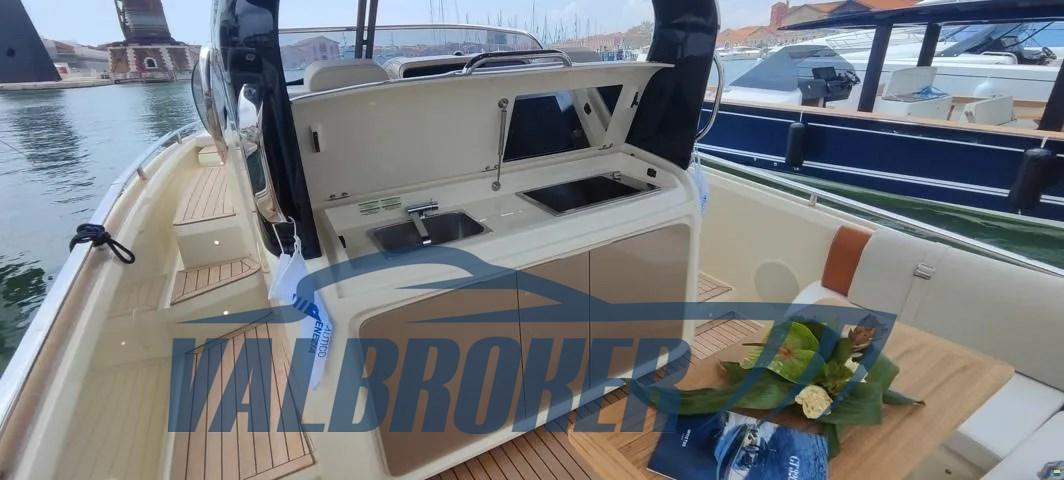 Eau sous pression, Couleur spéciale (Vanilla Sea), Douche de cockpit (caldo/freddo), Hard top (Carbonio), Lavabo dans le cockpit, Spots sous-marins, Plateforme arrière (teak), Cockpit en teck, Prise de quai, Guindeau électrique, Echelle de bain (a scomparsa), table de cockpit (teak).