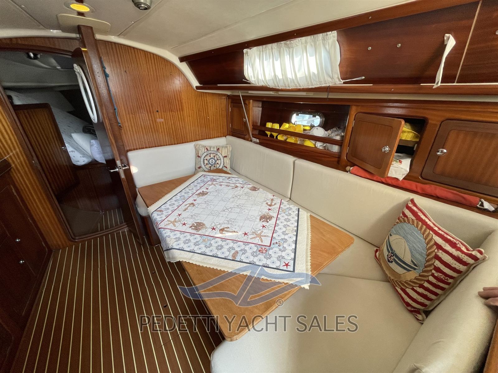 Alternateur, Douche de cockpit, Passerelle, Plateforme arrière, Pompe de cale manuelle, Cockpit en teck, Prise de quai, Guindeau électrique, Gréement monotoron, Echelle de bain, table de cockpit, Table pliante de salon.