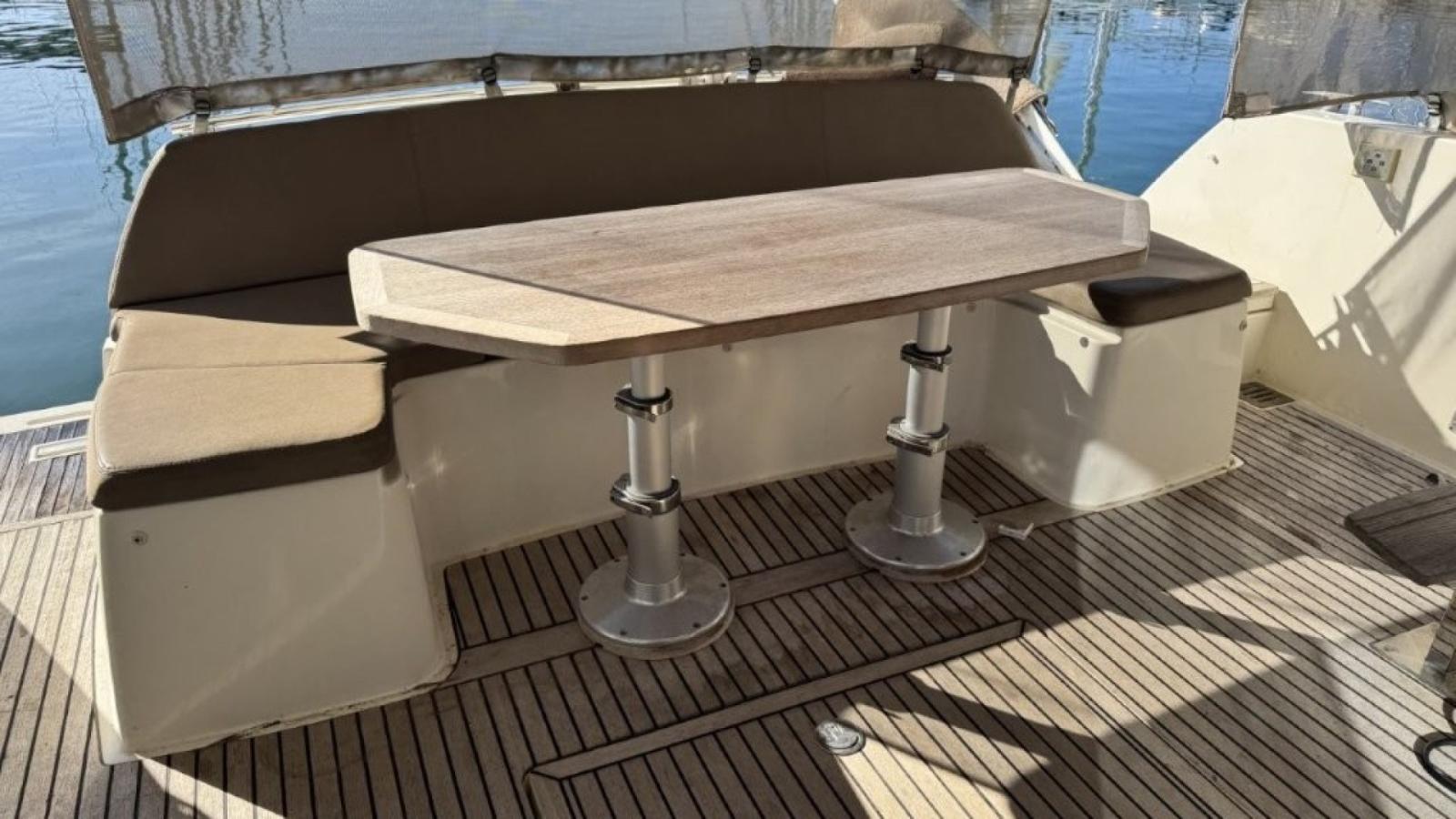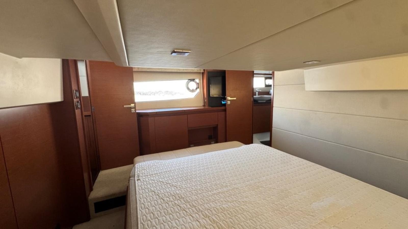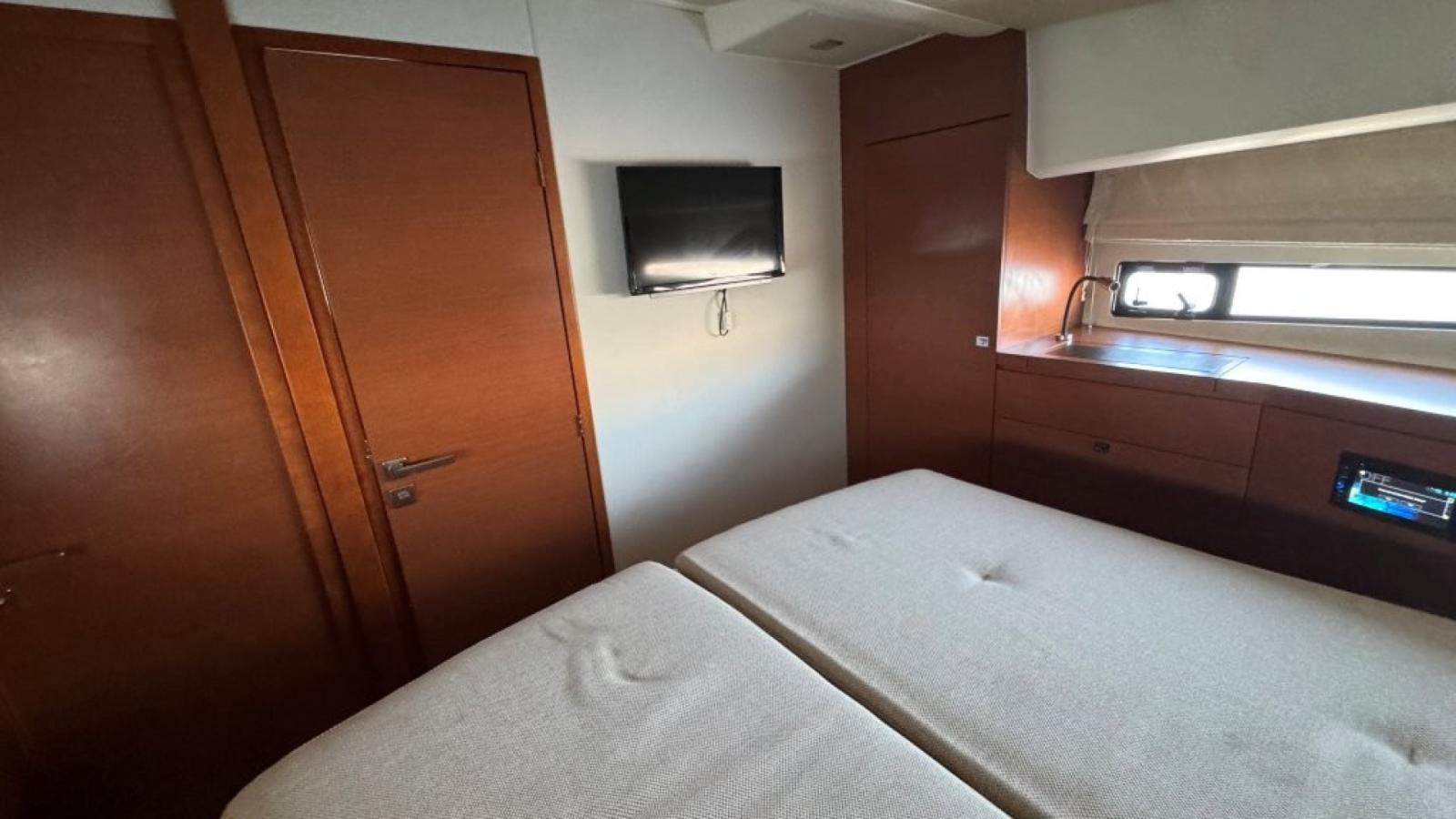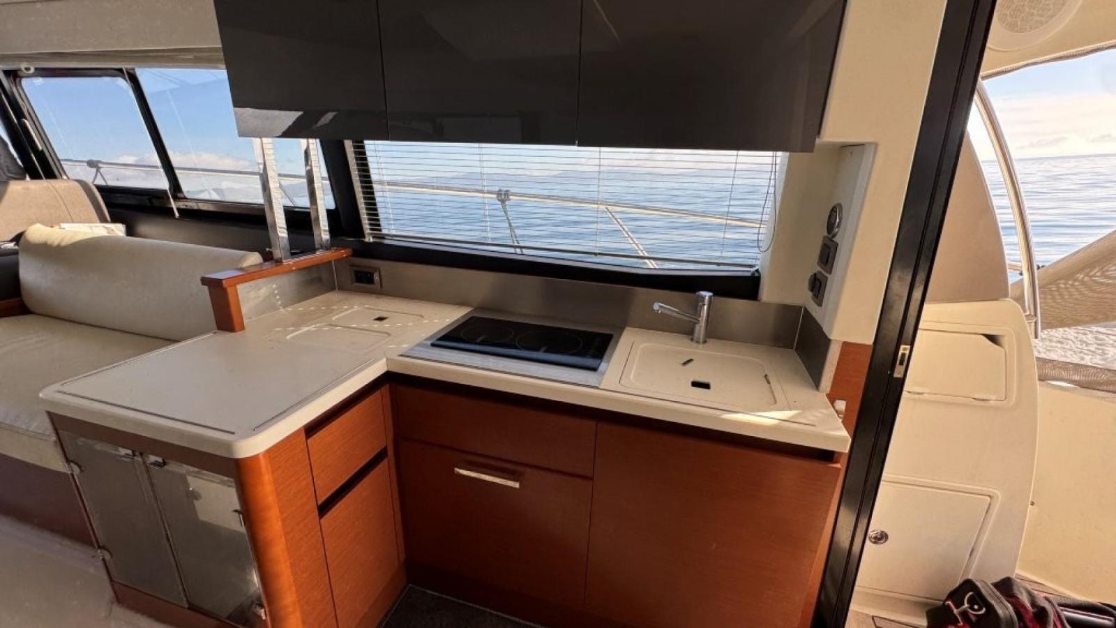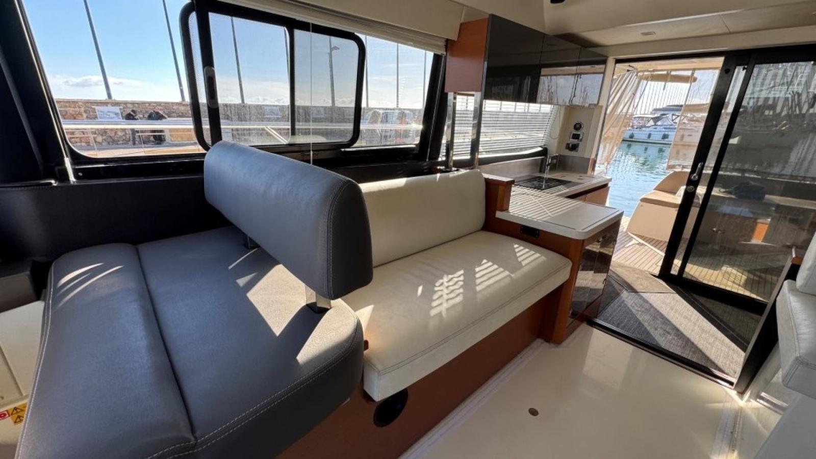 Elle offre des prestations uniques dans sa catégorie avec un agencement novateur. La cuisine centrale dessert idéalement le salon avec une vue panoramique 360°, aéré, confortable et fonctionnel, en mer comme à l’escale. La cabine propriétaire avec son escalier privé réserve un accès indépendant de la partie invités.