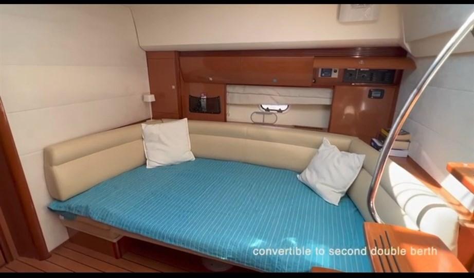 Alarme moteur, Eau sous pression, 8 Batteries, Douche de cockpit, Flaps hydrauliques, Garage à annexe, Hard top, Indicateurs de flaps, Lavabo dans le cockpit, Éclairage de courtoisie, Spots sous-marins, Passerelle (a scomparsa Besenzoni), Plateforme arrière (in teack), Pompe de cale automatique, Porte latérale, Cockpit en teck, Prise de quai, Connexion eau sous pression à quai, Onduleur, Guindeau électrique, Echelle de bain, table de cockpit, Table pliante de salon, Annexe, Corne.