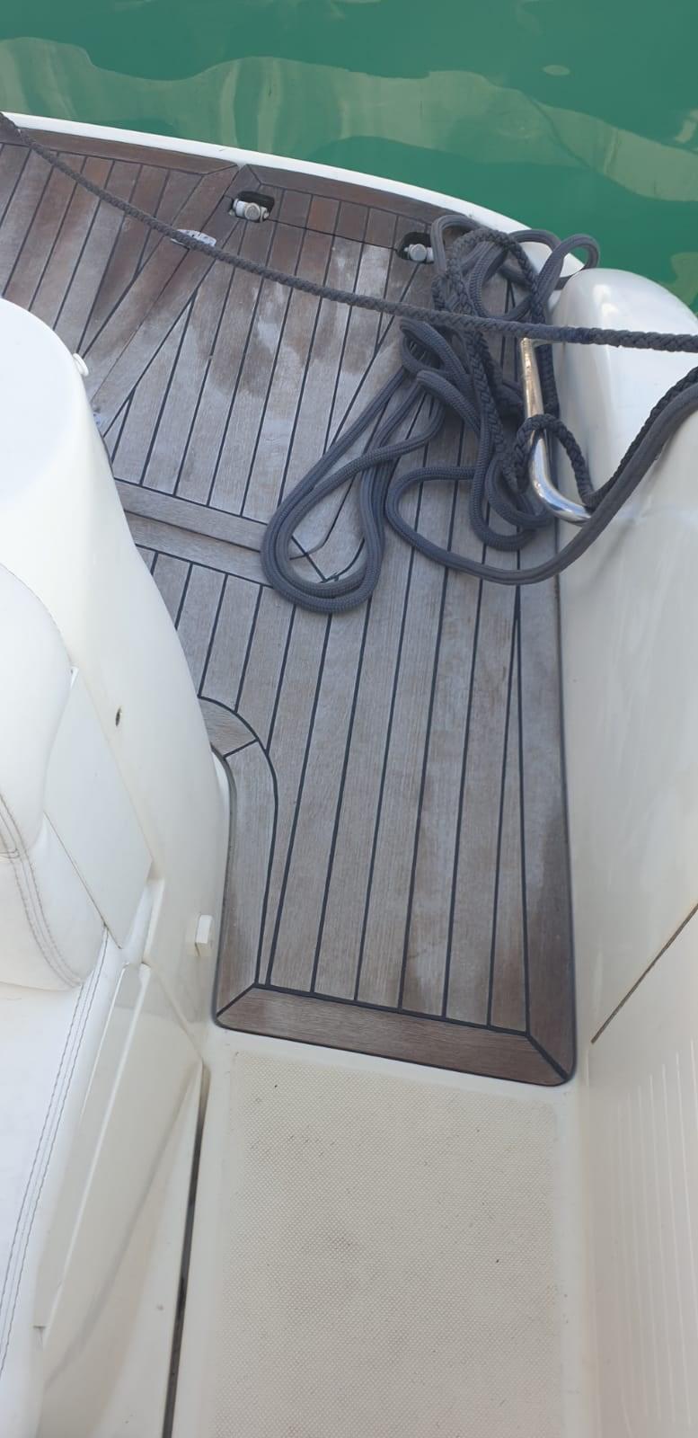 Alarme moteur, Alarme de pompe de cale, Douche de cockpit, Flaps hydrauliques, Indicateurs de flaps, Éclairage de courtoisie, Passerelle (idraulica), Plateforme arrière (teak), Porte latérale, Cockpit en teck, Prise de quai, Connexion eau sous pression à quai, Rollbar, Guindeau électrique, Echelle de bain, table de cockpit, Corne.