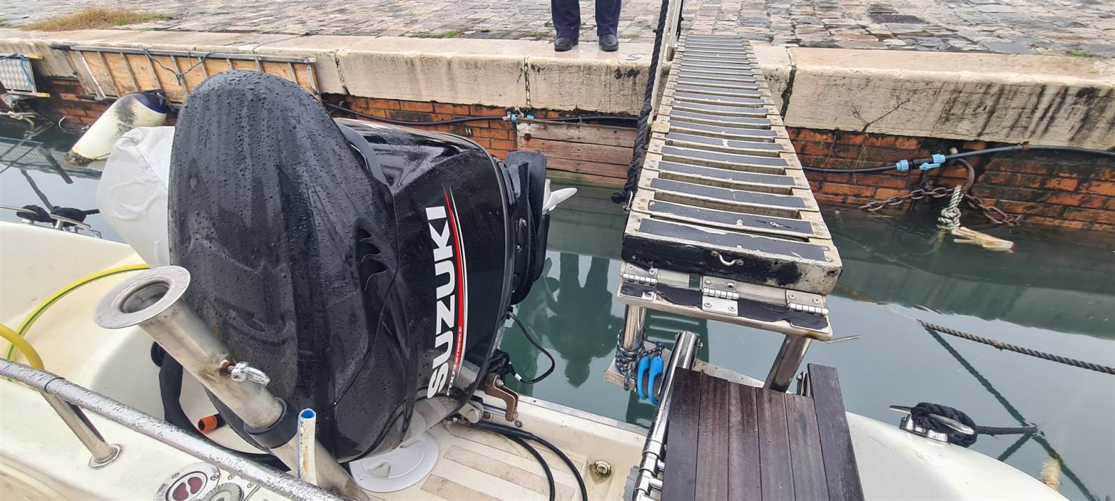 Alarme moteur, Ancre (acciaio con 50m catena calibrata), Eau sous pression, 2 Batteries (100ah recenti), Chargeur de batterie (recente), Douche de cockpit, 2 Flaps électriques, 3 Extincteur(s) fixe(s) (estintori), Indicateurs de flaps, Éclairage de courtoisie, Passerelle, Plateforme arrière, Pompe de cale automatique, Porte latérale (sostituita con tendalino , ma la porta scorrevole e' disponibile), Prise de quai, Connexion eau sous pression à quai, Guindeau électrique, Echelle de bain, Chaise support HB, Table pliante de salon, Corne.