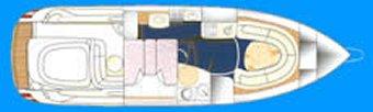 Alarme moteur, Alarme de pompe de cale, Ouverture du compartiment moteur électrique, Eau sous pression, Couleur spéciale (Scafo bianco con fascia blu), Douche de cockpit, Propulseur d'étrave (installata 2023), Phare de poursuite, Flaps hydrauliques, Garage à annexe, Indicateurs de flaps, Lavabo dans le cockpit, Plateforme arrière (in teak), Pompe de cale automatique, Prise de quai, Connexion eau sous pression à quai, Rollbar, Guindeau électrique, Echelle de bain, table de cockpit, Table pliante de salon, Corne.