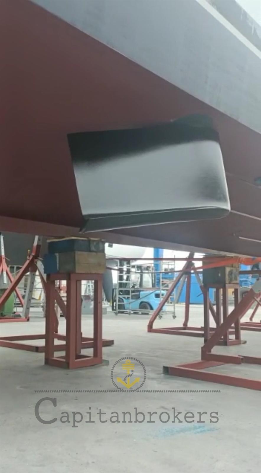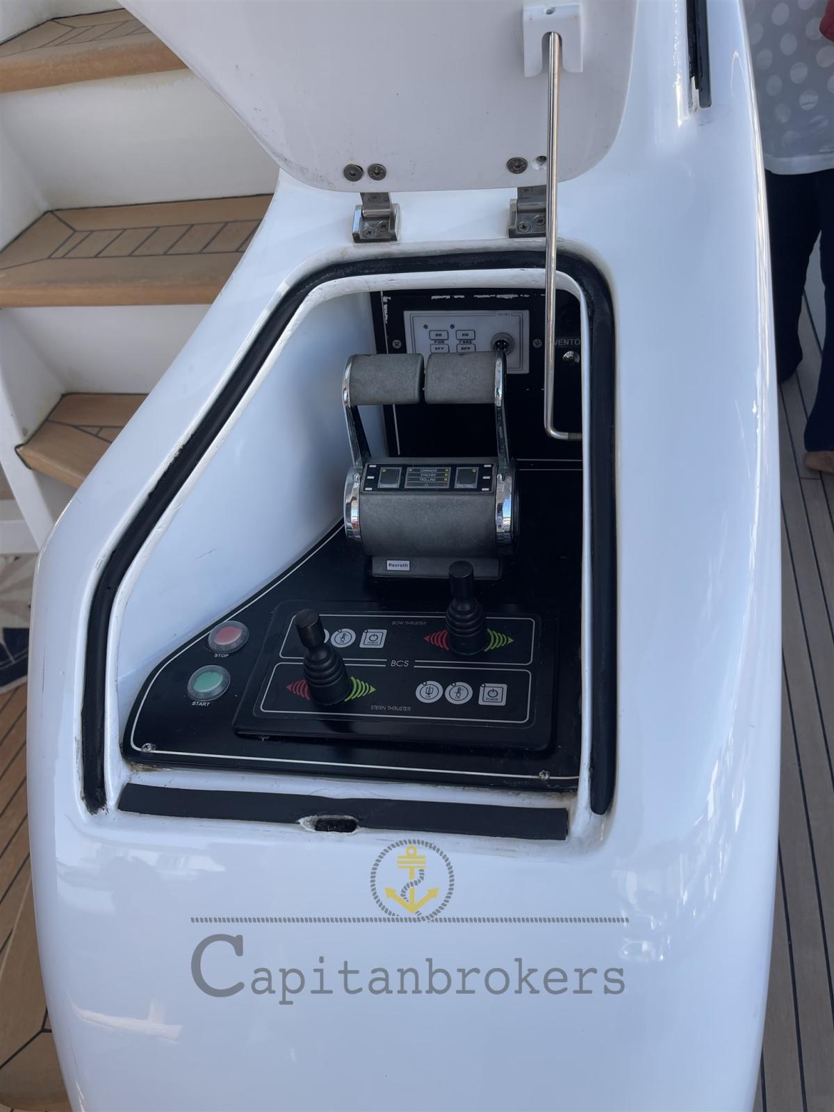Dérives stabilisatrices CMC, propulseur arrière, propulseur d’étrave, troisième poste de pilotage, instrumentation récente Raymarine Axiom, machine à eau, garage de tender, bossoirs de tender.