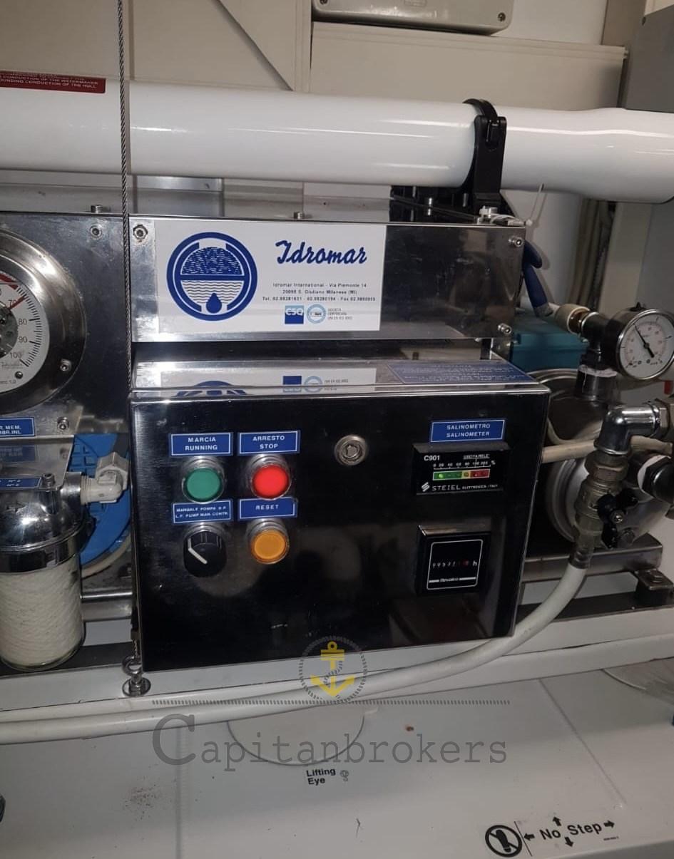 Air conditionné (caldo/freddo con compressori 2022), Ballon d'eau chaude (Impianto di riscaldamento con boiler 2020), Contrôleur domotique, Dessalinisateur (Idromar 160 l/h), Cuve à eaux noires, Prises interieures 12v, Prises interieures 220v.