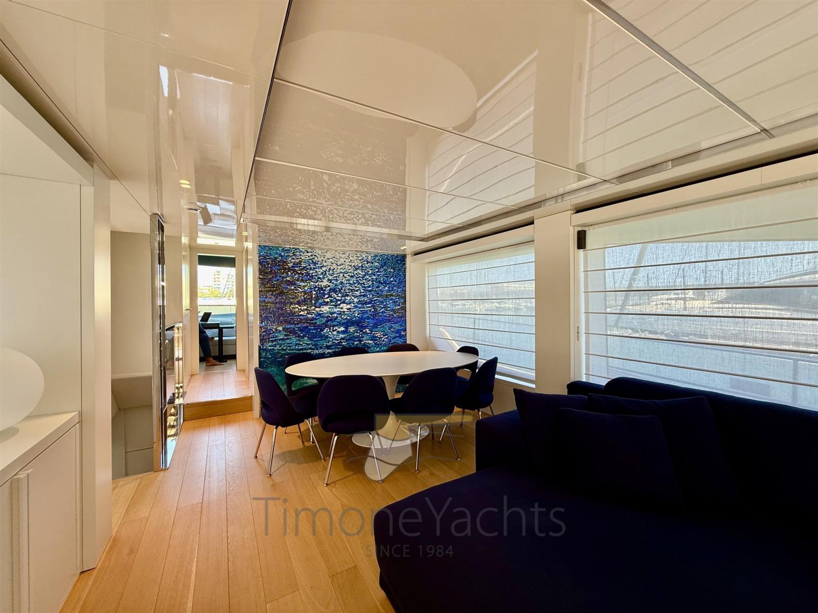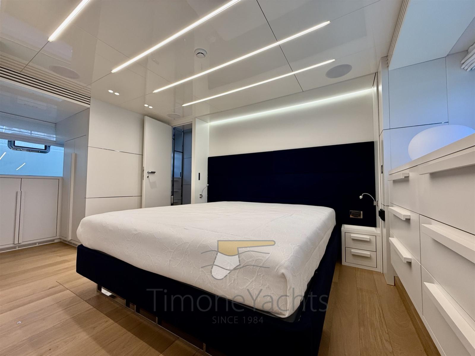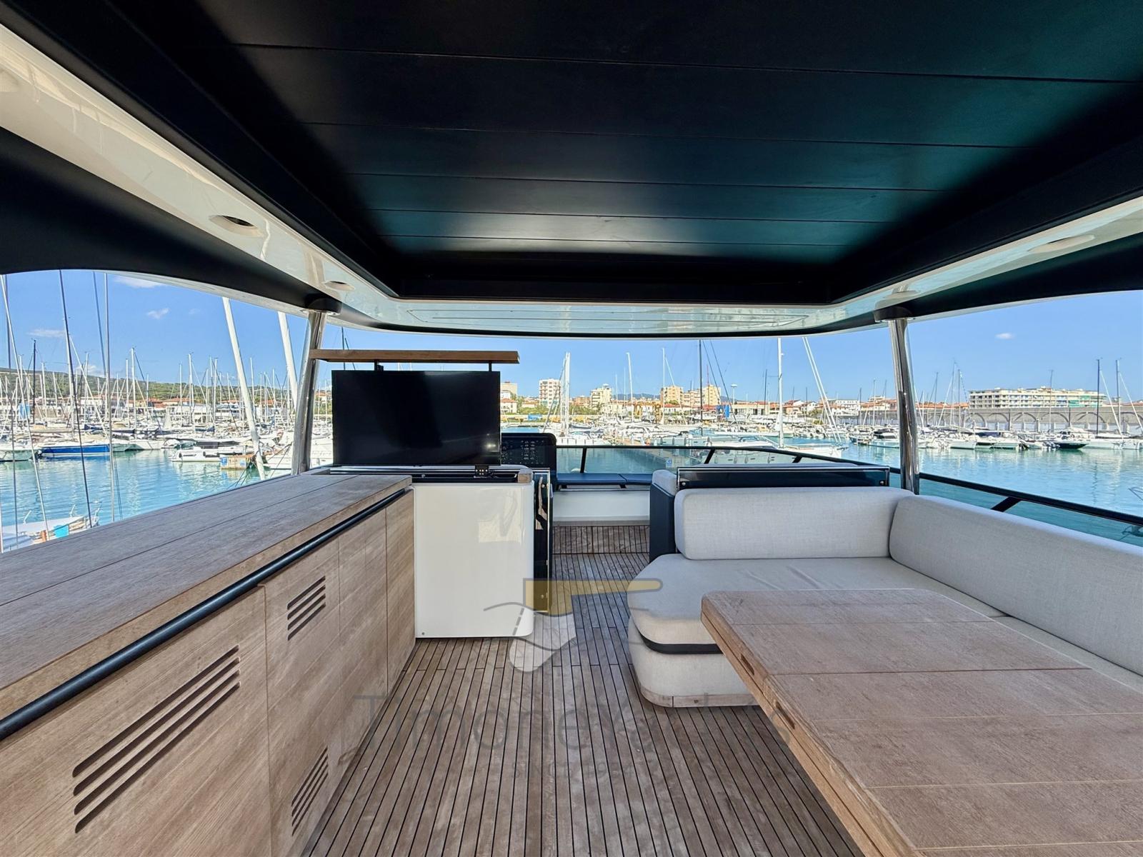 Propriétaire unique du nouveau Cranchi 78 fly. Unique dans ses intérieurs d’un blanc satiné pur, magnifiquement associés à des parquets en chêne naturel et des canapés en coton bleu. 4 cabines d’invités + 5 salles de bain ; 3 couchages d’équipage.