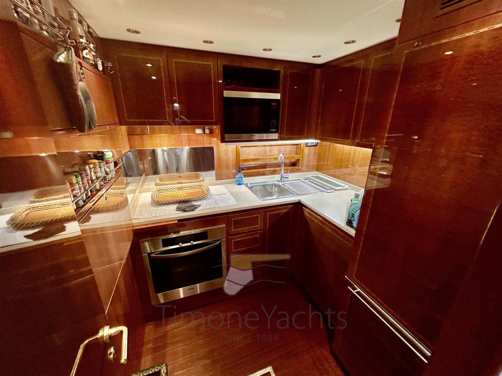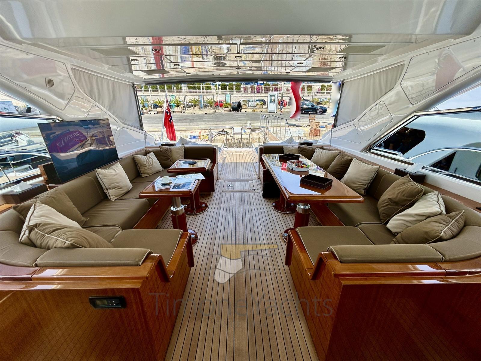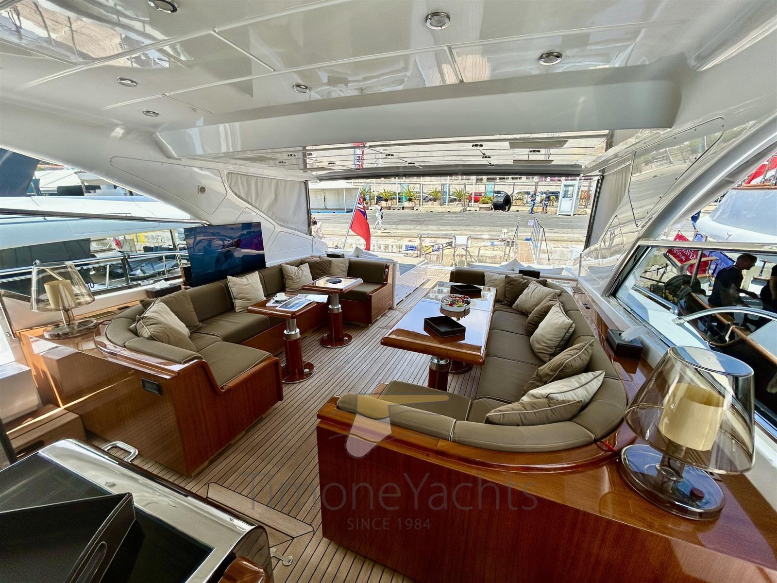 Alarme de pompe de cale, Alternateur, Eau sous pression, Passavant en teck, Douche de cockpit, Phare de poursuite, Flaps hydrauliques, Garage à annexe, Hard top, Extincteur(s) fixe(s), Indicateurs de flaps, Lavage de chaine, Éclairage de courtoisie, Spots sous-marins, Passerelle, Plateforme arrière, Pont en teck, 2 Porte latérale, Cockpit en teck, Prise de quai, Connexion eau sous pression à quai, Onduleur, Guindeau électrique, Echelle de bain, 2 table de cockpit, Annexe, Corne, Winch électrique arrière, Winch électrique avant.