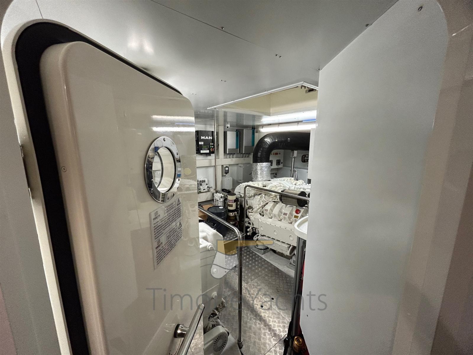 Passavant en teck, Douche de cockpit, Flaps hydrauliques, Garage à annexe, Hard top, Extincteur(s) fixe(s), Indicateurs de flaps, Lavage de chaine, Lavabo dans le cockpit, Éclairage de courtoisie, Spots sous-marins, Passerelle, 3 Porte latérale, Cockpit en teck, Prise de quai, Connexion eau sous pression à quai, 3 Stabilisateurs (ABT TRAC (underway + zero speed) + nr 2 Seakeeper NG9), table de cockpit, Annexe, Corne, 2 Winch électrique arrière, 2 Winch électrique avant.