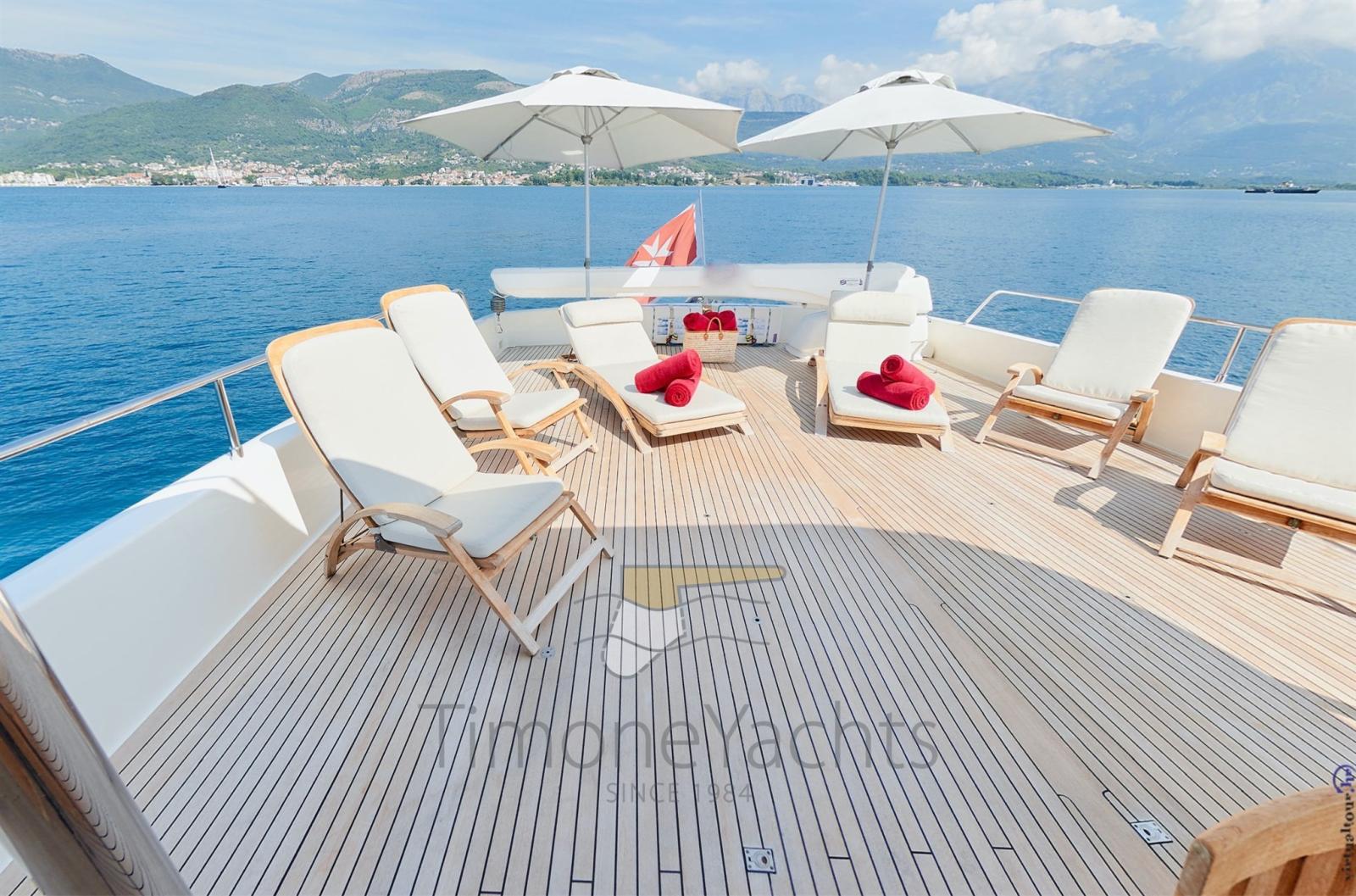 Passavant en teck, Douche de cockpit, Phares fixes arrière, Phare de poursuite, Flaps hydrauliques, Garage à annexe, Grue de flybridge, Extincteur(s) fixe(s), Indicateurs de flaps, Lavage de chaine, Éclairage de courtoisie, Spots sous-marins, Jet-ski (Seadoo 60hp (year 2023)), Passerelle, Porte latérale, Cockpit en teck, Prise de quai, Connexion eau sous pression à quai, Système de filtration des eaux usées (Hamann), 4 Stabilisateurs (nr.3 ARG gyro + fins), table de cockpit, Annexe (Saxador 200 sport (year 2023)), Corne, 2 Winch électrique arrière, 2 Winch électrique avant.
