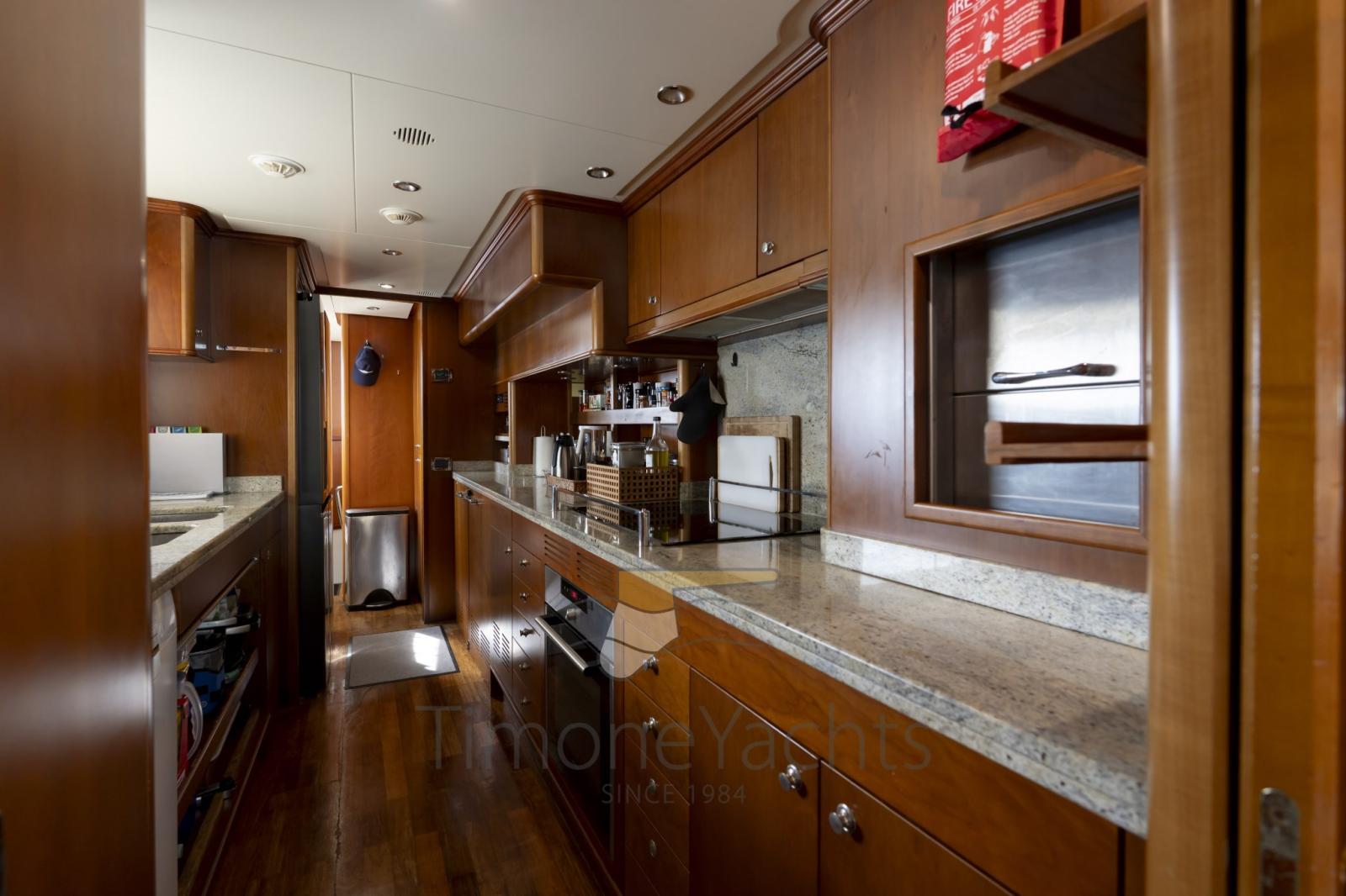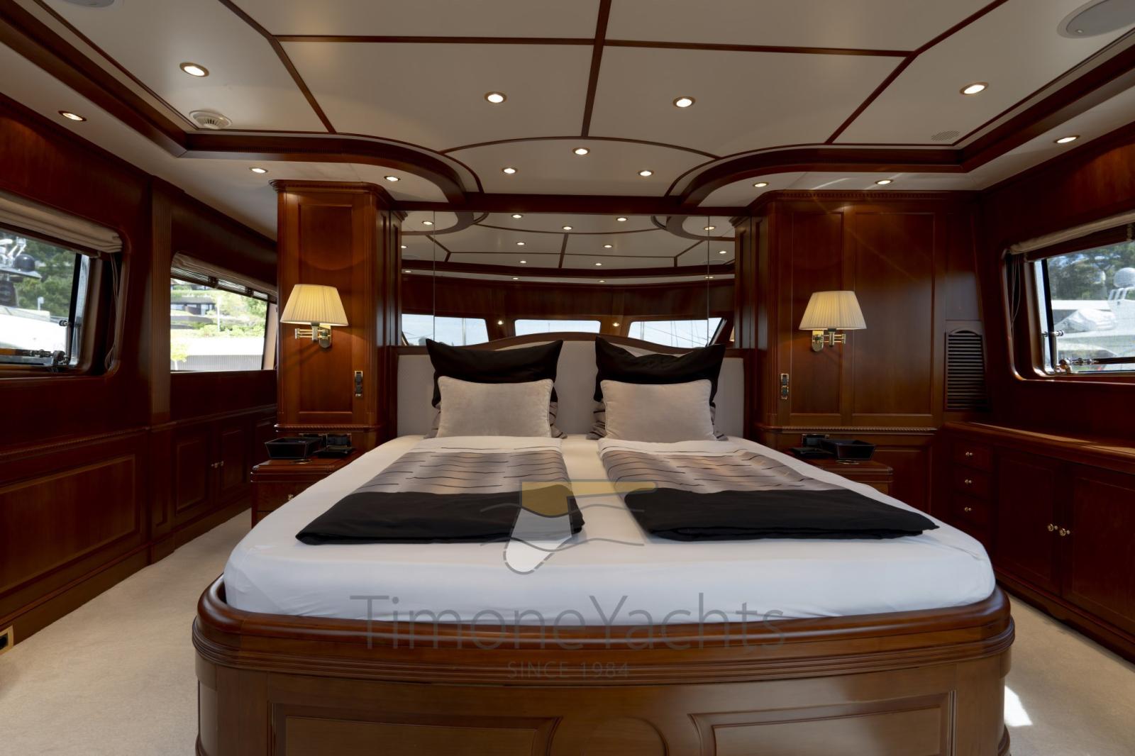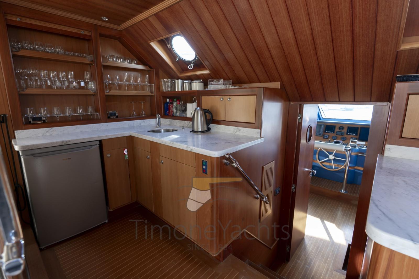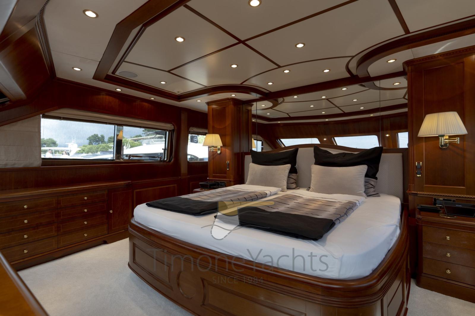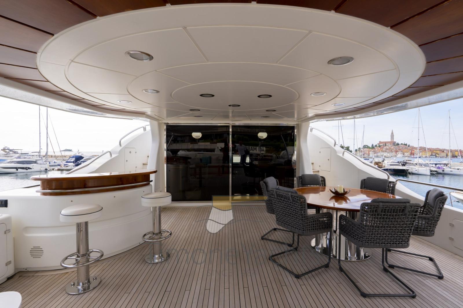 Eau sous pression, Passavant en teck, Douche de cockpit, Double barre à roue, Phare de poursuite, Flaps hydrauliques, Garage à annexe, Grue de flybridge, Lavage de chaine, Spots sous-marins, Passerelle, Plateforme arrière, Porte latérale, 2 Porte latérale, Cockpit en teck, Prise de quai, Connexion eau sous pression à quai, Echelle de bain, Stabilisateurs, table de cockpit, Annexe, Filières avec sortie latèrale, Corne, Winch électrique arrière, Winch électrique avant.