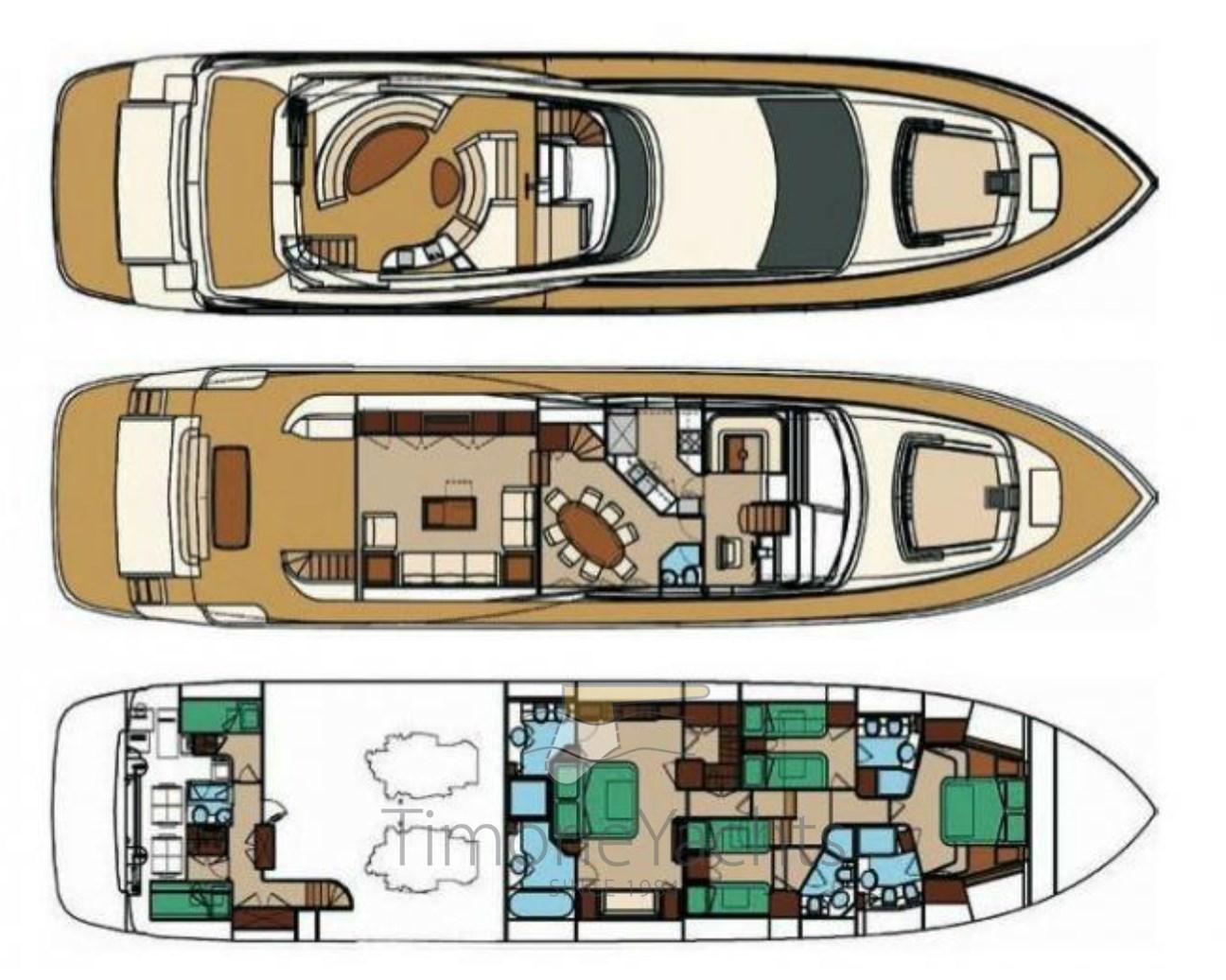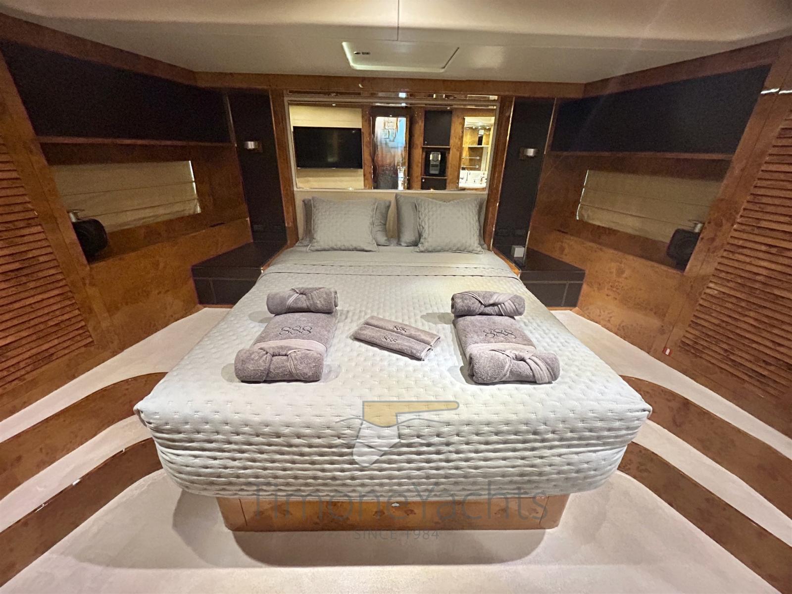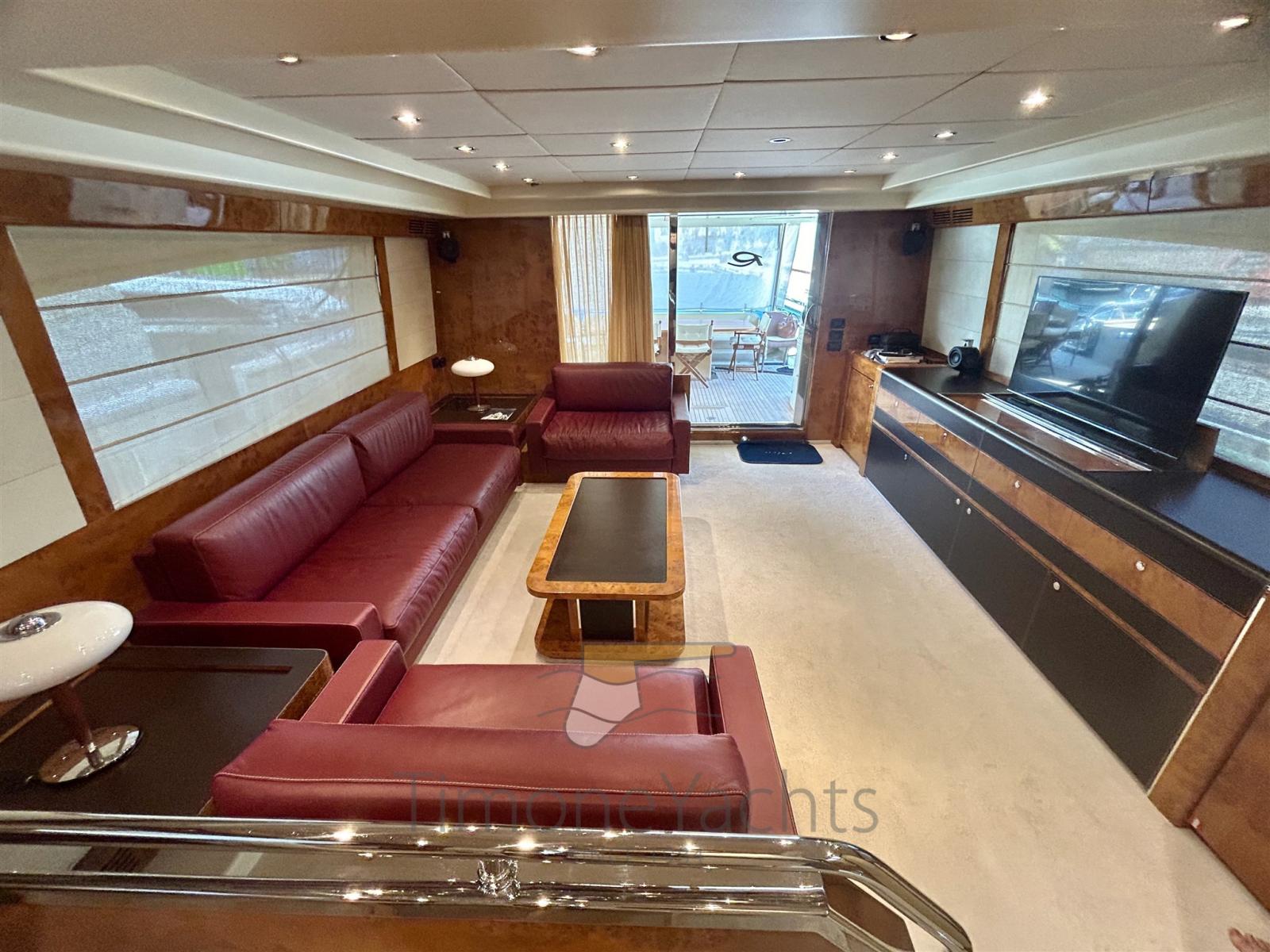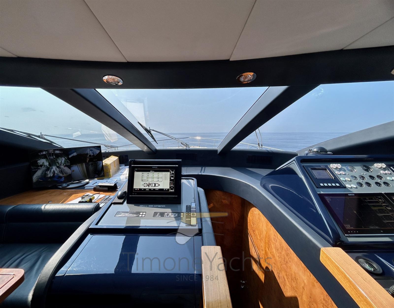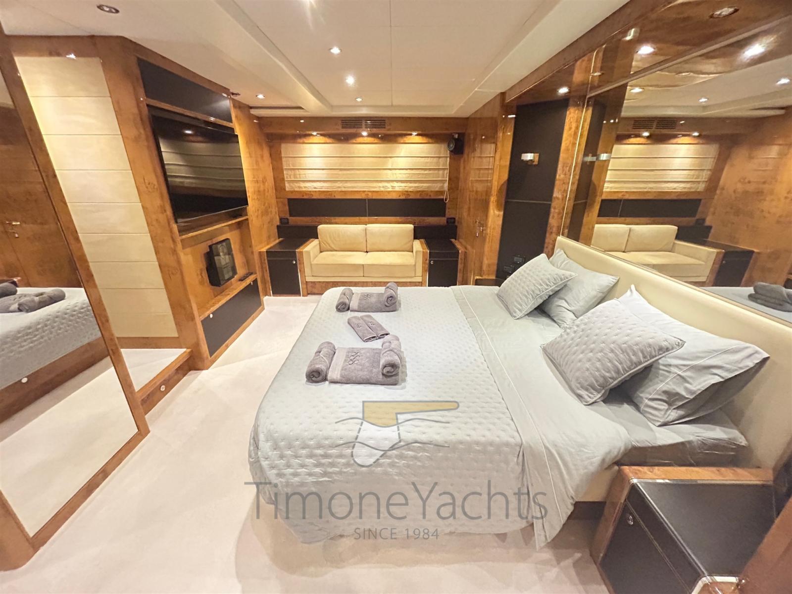 Eau sous pression, Passavant en teck, Douche de cockpit, Phares fixes arrière, Phare de poursuite, Flaps hydrauliques, Garage à annexe (capable of 3.6 outboard dinghy), Grue de flybridge, Extincteur(s) fixe(s), Indicateurs de flaps, Lavage de chaine, Éclairage de courtoisie, Spots sous-marins, Passerelle, Plateforme arrière, Pompe de cale manuelle, 2 Porte latérale, Cockpit en teck, Prise de quai, Connexion eau sous pression à quai, Onduleur, Echelle de bain, 2 Stabilisateurs (Mitsubishi ARG), table de cockpit, Corne, 2 Winch électrique arrière, 2 Winch électrique avant.