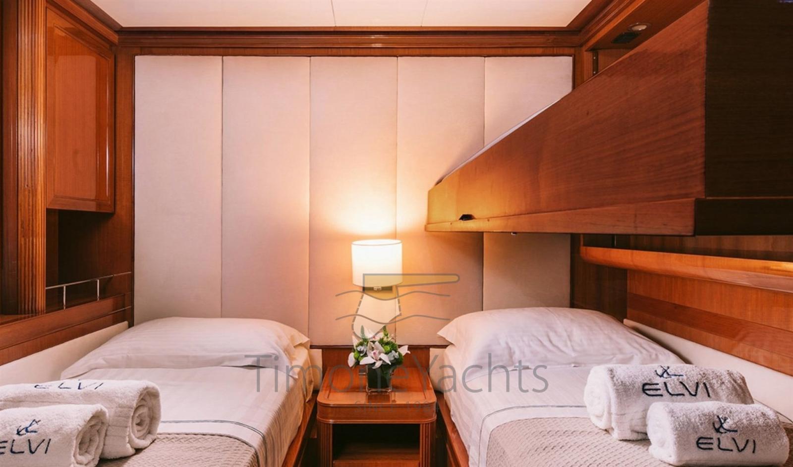 10 Batteries (18 x Varta), Passavant en teck, Douche de cockpit, Phare de poursuite, Bossoirs pour annexe, Grue de flybridge, Extincteur(s) fixe(s), Indicateurs de flaps, Lavage de chaine, Éclairage de courtoisie, Spots sous-marins, Passerelle, Pont en teck, 2 Porte latérale, Cockpit en teck, Echelle de bain, table de cockpit, Annexe (Grant S 4.30m Yamaha 60 hp), Corne, Winch électrique arrière.
