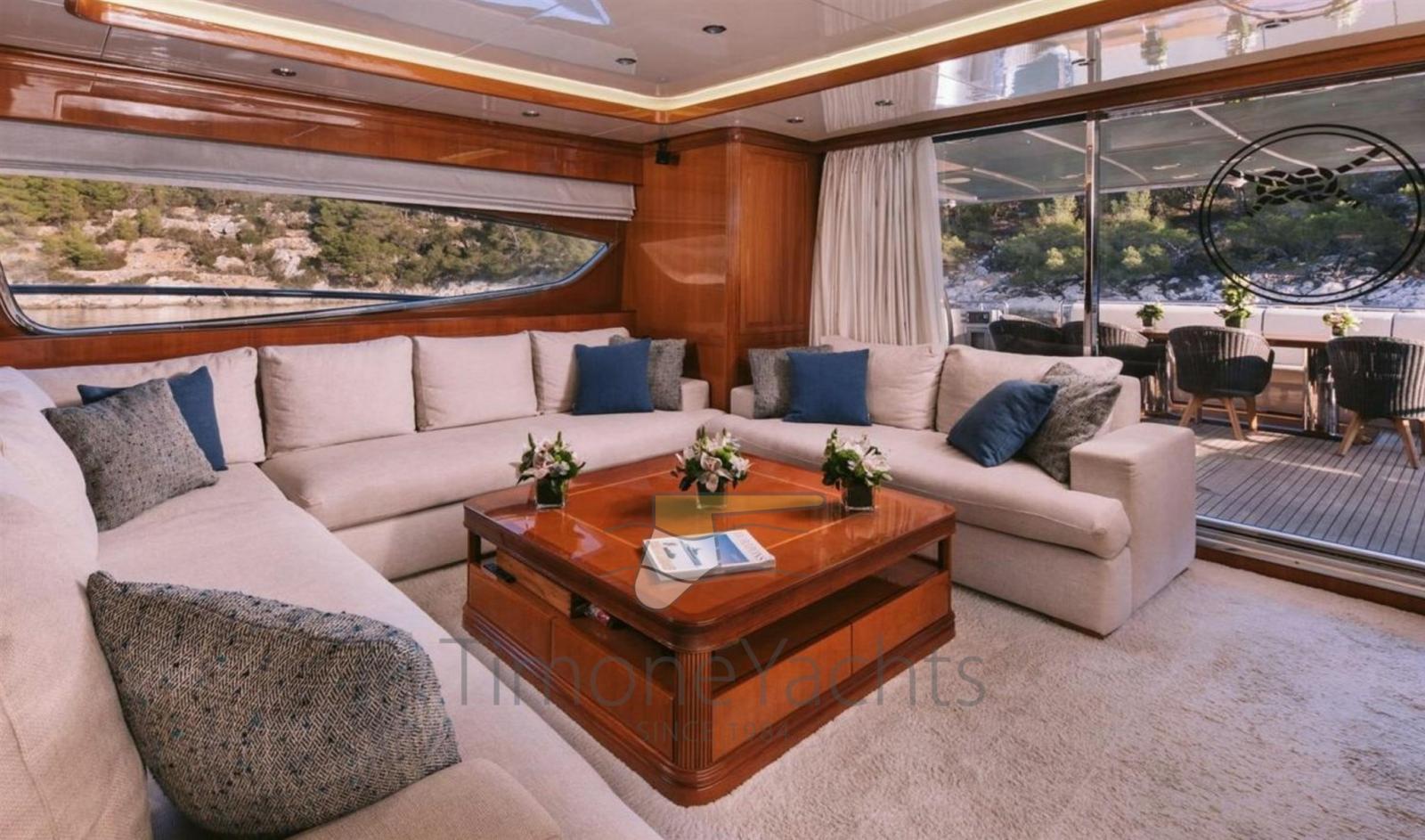 L’organisation de l’espace est l’un des points forts du 95S : l’aménagement comprend jusqu’à 5 cabines invités, dont une grande suite parentale au milieu du navire, assurant un maximum de confort pour 10 personnes. Le salon principal s’ouvre sur une salle à manger séparée, tandis que les grandes fenêtres offrent de la lumière naturelle et une vue magnifique sur la mer. Les espaces extérieurs sont généreux : le flybridge équipé, le cockpit et le bain de soleil avant offrent différents espaces de détente et de convivialité.
