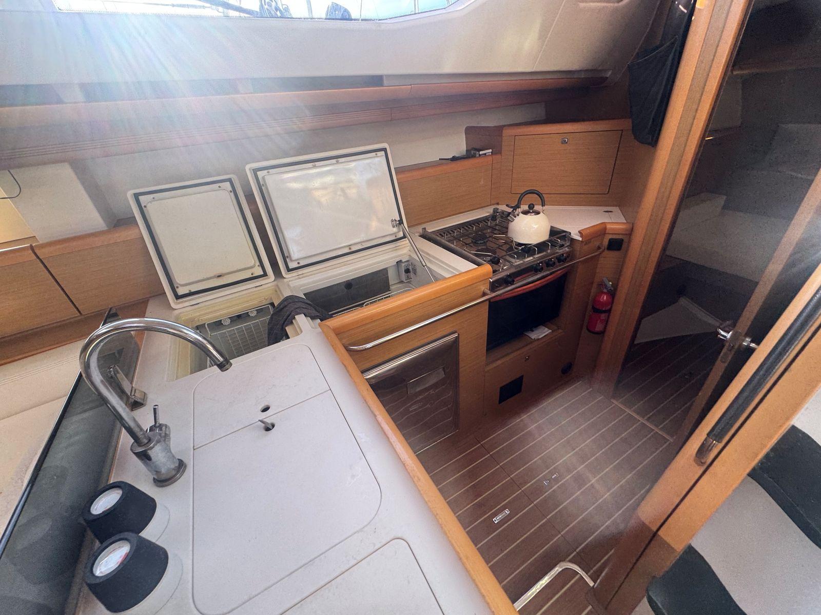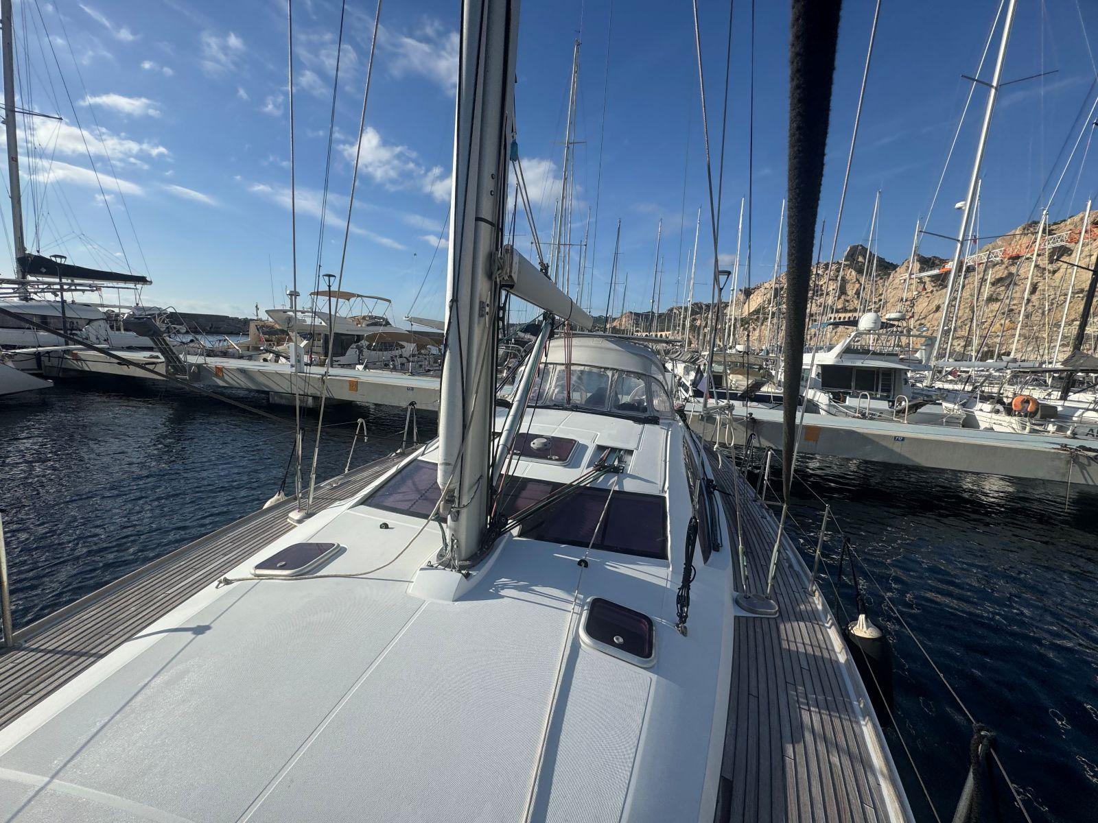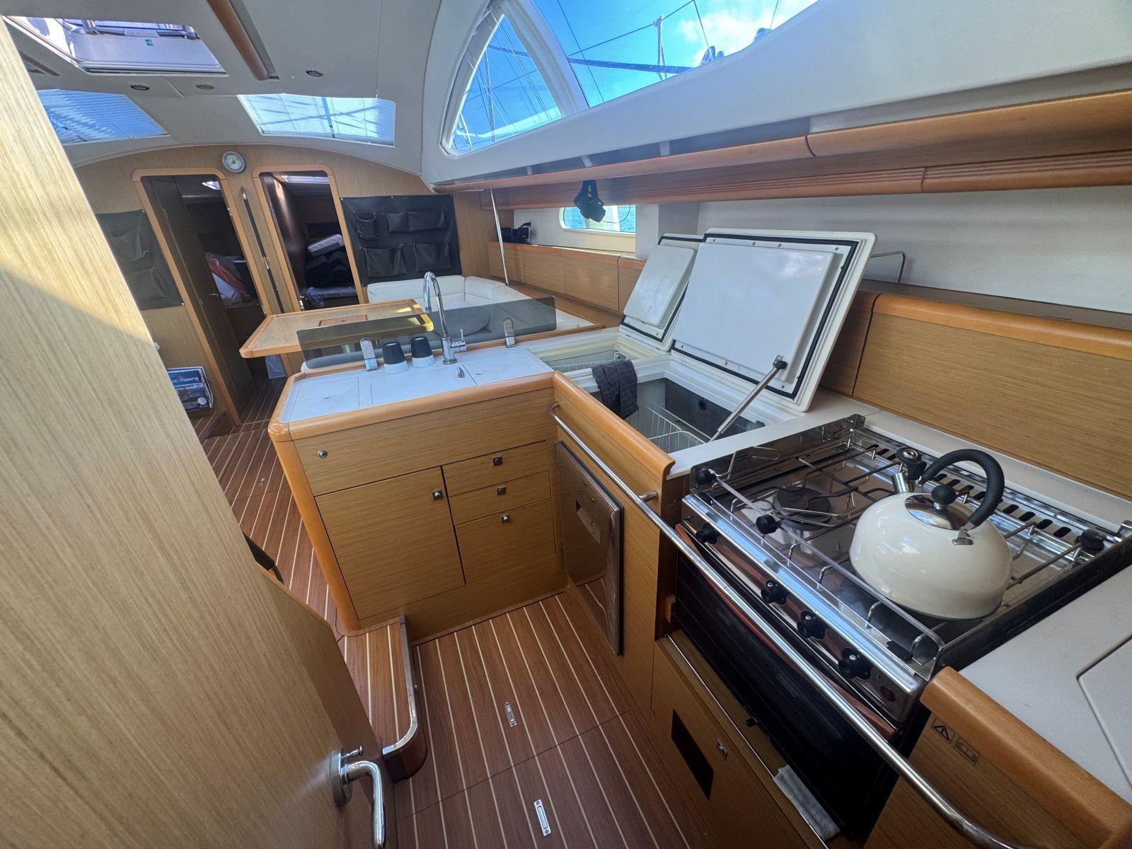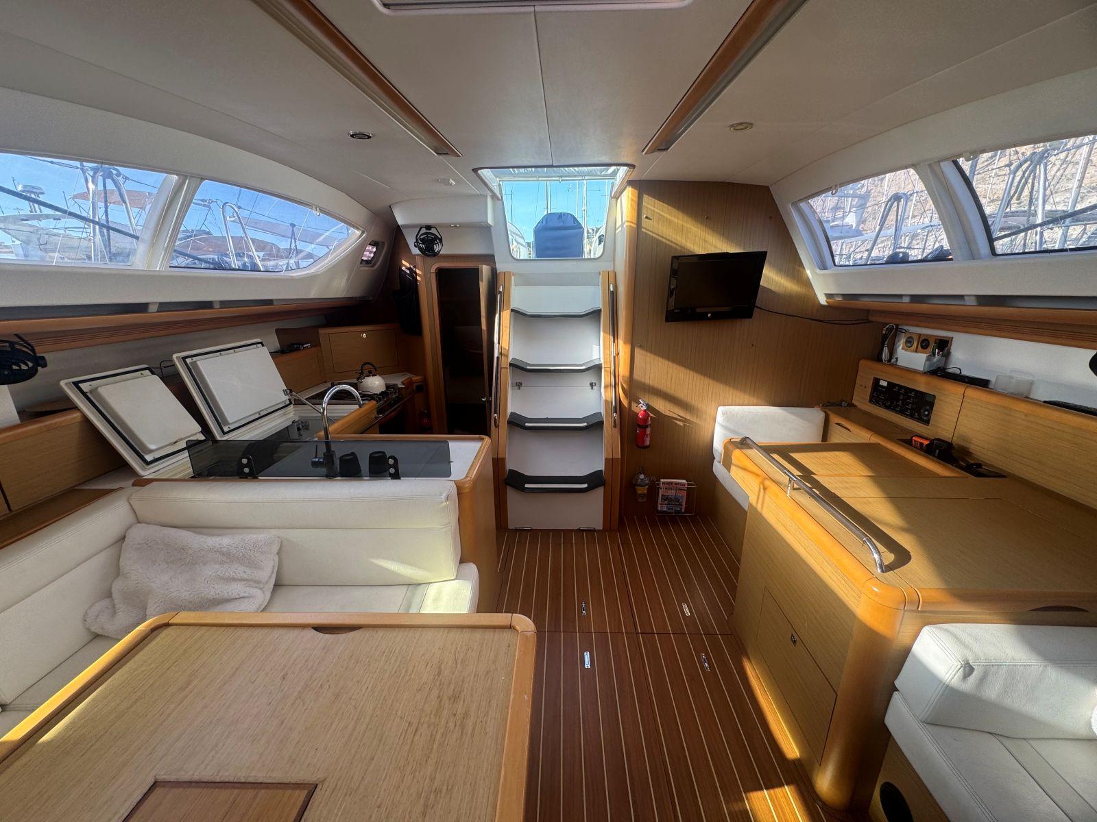 Pour une navigation fluide et accessible, SUN ODYSSEY 50DS, est équipé de voiles sur enrouleur, winch électrique de roof, propulseur étrave, rendant les manœuvres simples et sereines. Un équipement de confort et de vie à bord complet (groupe électrogène, chauffage air pulsé, dessalinisateur, lave linge séchant ) pour ce voilier élégant et performant pour des croisières hauturières.