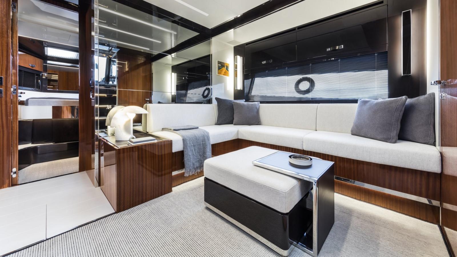 2 Alarme moteur, Alarme de pompe de cale, Auto Dynamic Trim Interceptor (Humphree), Eau sous pression, Passavant en teck, Câble d’alimentation à quai, Couleur spéciale (Oro), Douche de cockpit, Fixation de l’ancre (Musone rinforzato 2025), Garage à annexe, Indicateurs de flaps, Lavage de chaine, Lavabo dans le cockpit, Éclairage de courtoisie, Spots sous-marins, Moniteur de batterie, Moteur hors-bord pour annexe, 6 Défenses, Passerelle (Besenzoni elettroidraulica a scomparsa), Plateforme arrière, Pompe de Vidange du Réservoir d’Eaux Usées, Pompe de cale automatique, Pompe de cale manuelle, Pompe de Lavage du Pont, Pont en teck, Porte latérale, Cockpit en teck, Prise de quai, Guindeau électrique, Echelle de bain, Selles pour Annexe, table de cockpit, Table pliante de salon, Annexe, Filières avec sortie latèrale, Corne, Winch électrique arrière, Winch électrique avant.