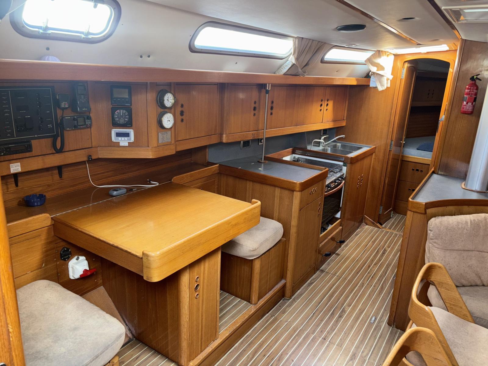 Capacités importantes pour la grande croisière : 900 L d’eau douce, 360 L de carburant, 60 L eaux noires. Tirant d’eau 1,80 m permettant un excellent compromis performance / accessibilité des mouillages.