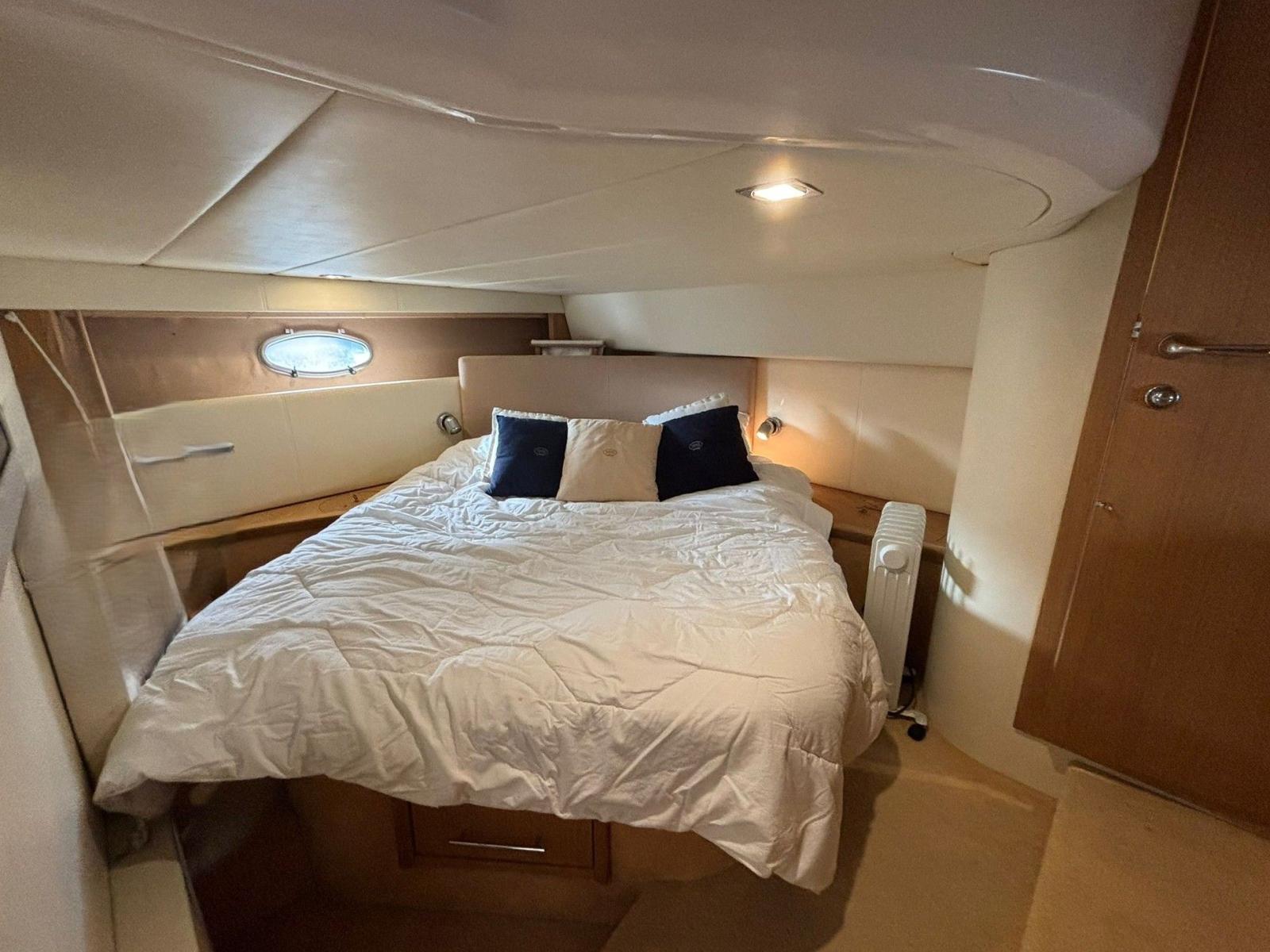 Le Sessa Marine Oyster 42 de 2005 est équipé de 2 moteurs Volvo de 2 x 310 CV, totalisant seulement 287 heures moteur. Bateau bien entretenu, il dispose d’un joystick pour des manœuvres simples et précises au port ainsi que d’un convertisseur pour plus de confort à bord.