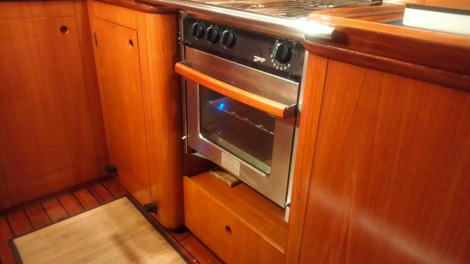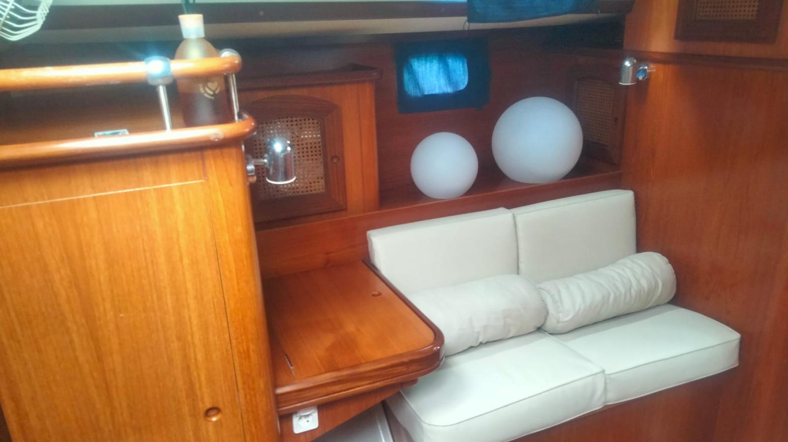 Alarme moteur, Ancre (con 70m di catena sostituita 2020), Eau sous pression, 7 Batteries (sostituite 2020), Passavant en teck (da rivedere), Couleur spéciale (scafo blu), Douche de cockpit, Double barre à roue, Propulseur d'étrave (Max Power), Éclairage de courtoisie, Pompe de cale manuelle, Porte latérale, Cockpit en teck (in buone condizioni), Prise de quai, Connexion eau sous pression à quai, Onduleur, Guindeau électrique, Gréement monotoron (sostituito nel 2010), Echelle de bain, Chaise support HB, table de cockpit, 2 Winch (da 44), 4 Winch électrique (2 da 66 e 2 da 44).