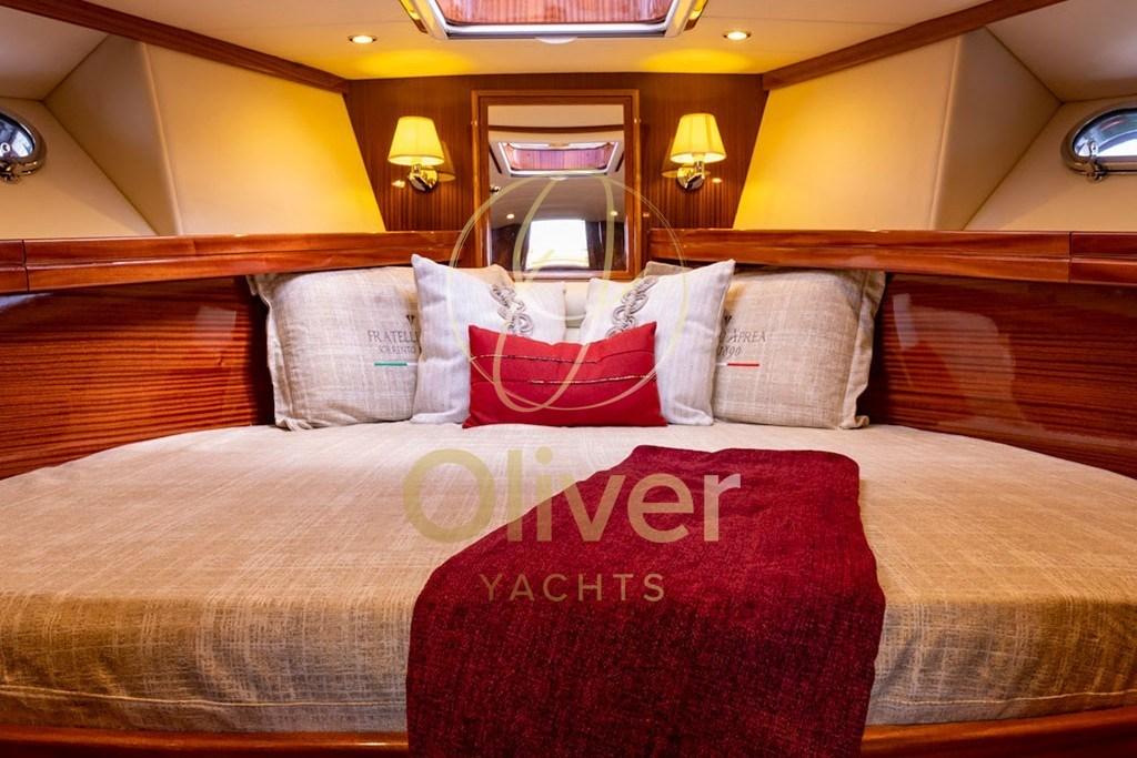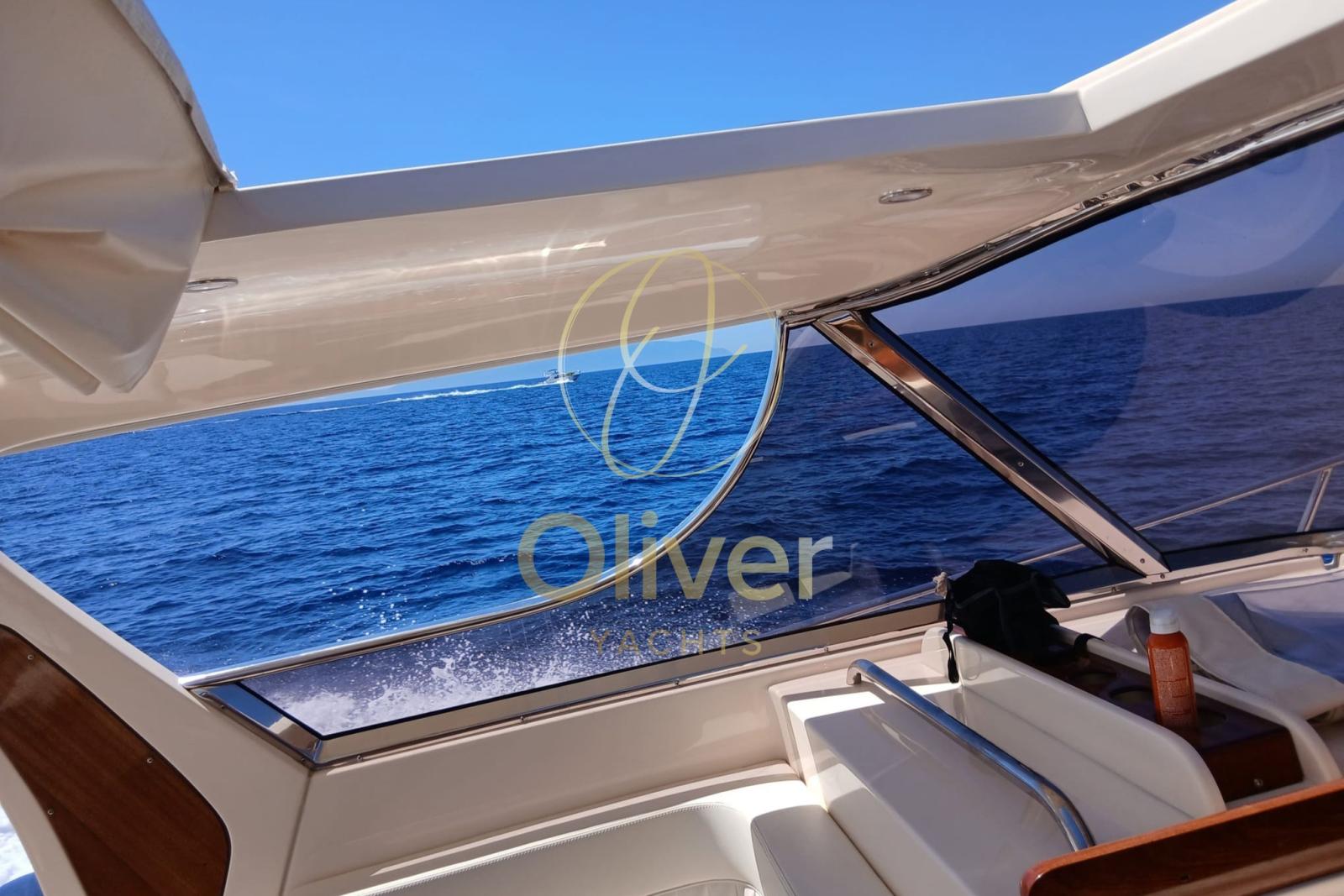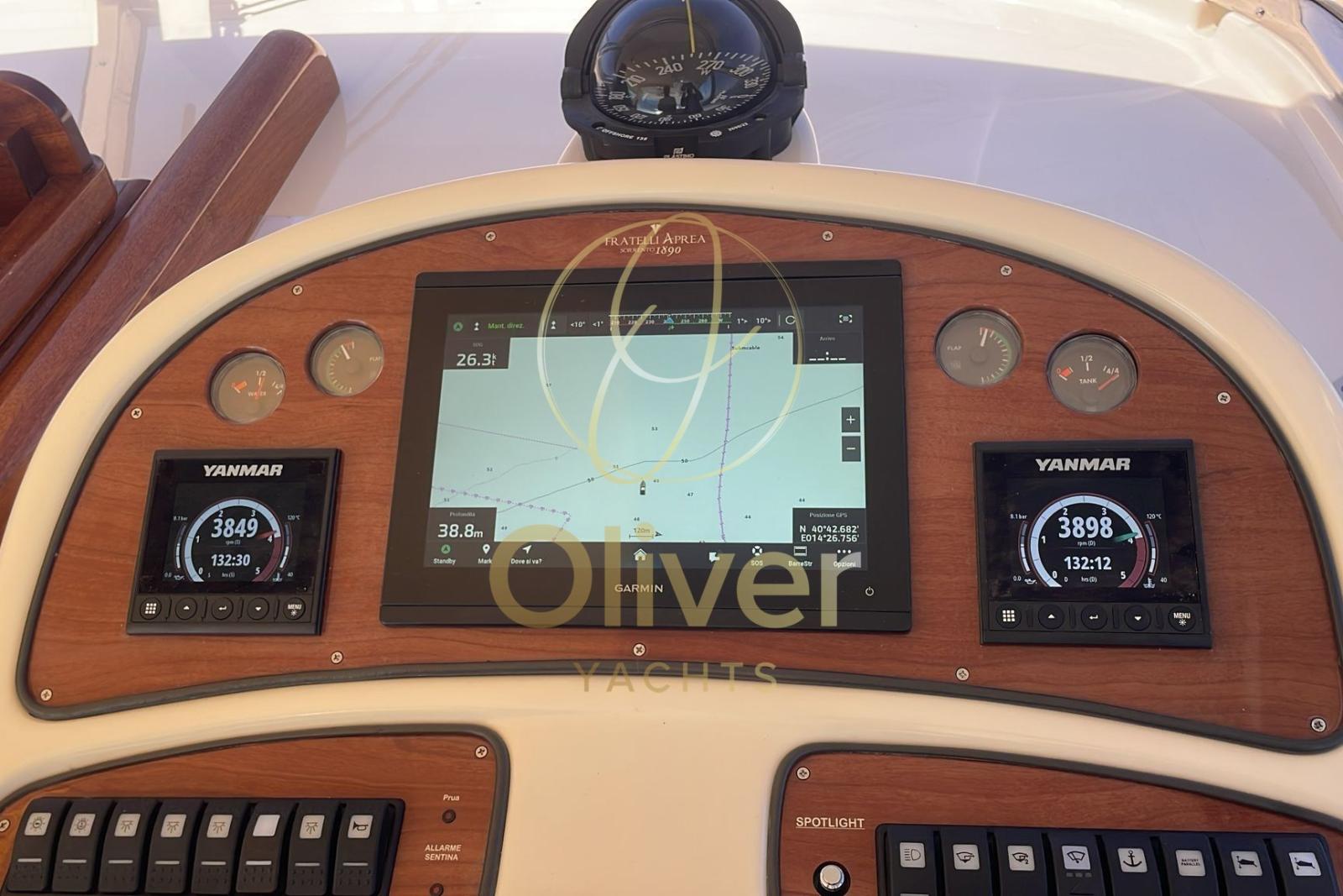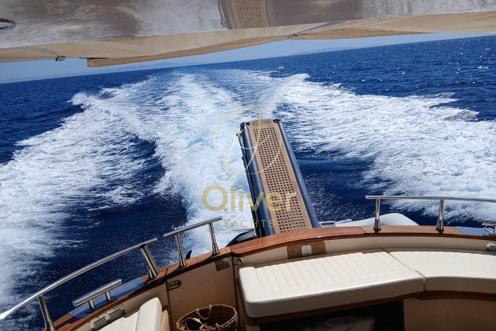 Alarme moteur, Alarme de pompe de cale, Alternateur, Aspiration des Eaux Usées depuis le Pont, Eau sous pression, Système de vidange, Passavant en teck, Filères, Douche de cockpit, Phares fixes arrière, Phare de poursuite, Flaps hydrauliques, Hard top, Extincteur(s) fixe(s), Indicateurs de flaps, Lavage de chaine, Lavabo dans le cockpit, Éclairage de courtoisie, Spots sous-marins, Moniteur de batterie, Défenses, Passerelle (idraulica), Plateforme arrière, Pompe de Vidange du Réservoir d’Eaux Usées, Pompe de cale automatique, Pompe de cale manuelle, Pompe de Lavage du Pont, Pompe à Eau de Mer, Pont en teck, Porte latérale, Cockpit en teck, Prise de quai, Connexion eau sous pression à quai, Guindeau électrique, Echelle de bain, Système de filtration des eaux usées, table de cockpit, Filières avec sortie latèrale, Corne, Pont en teck.