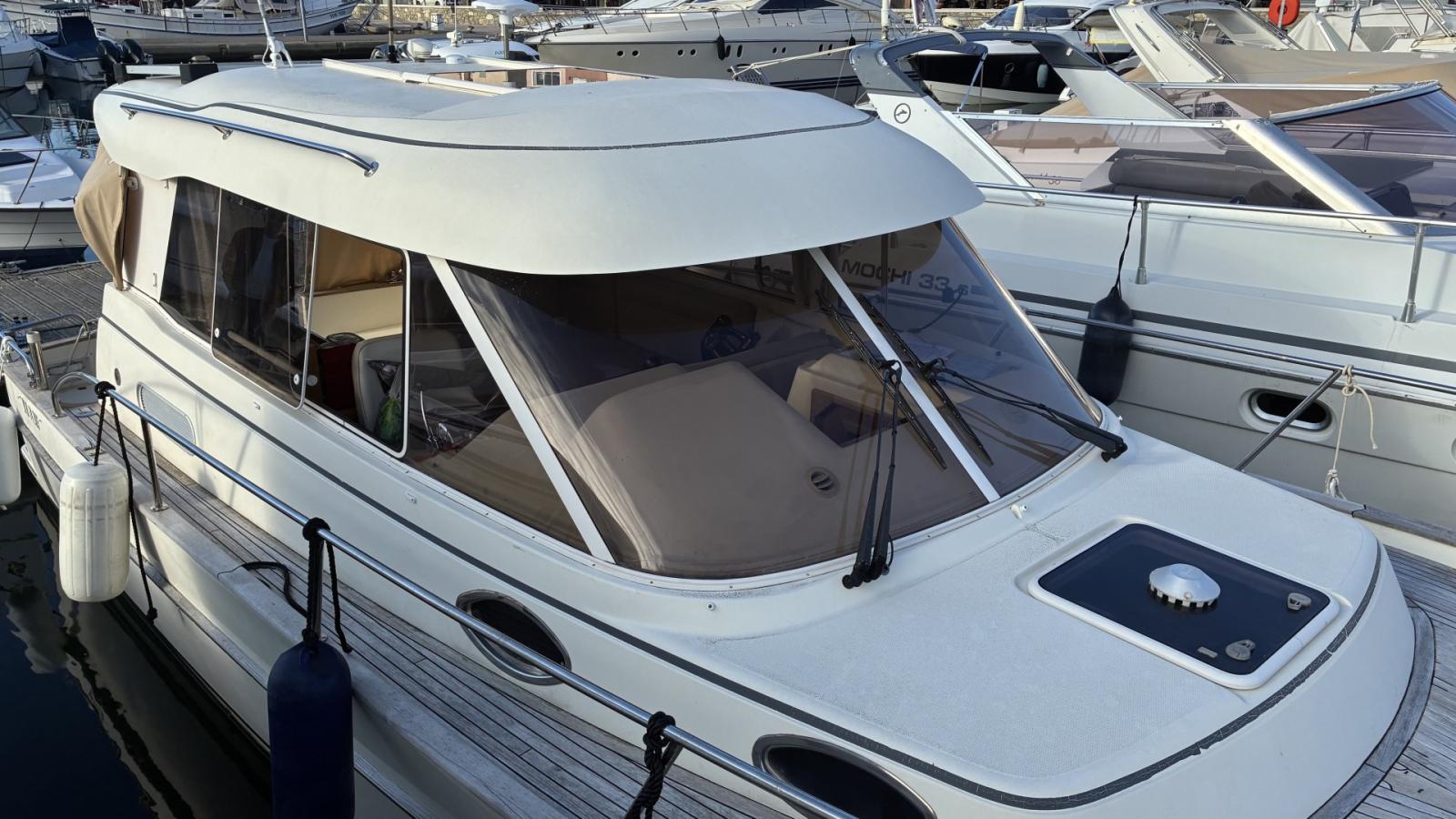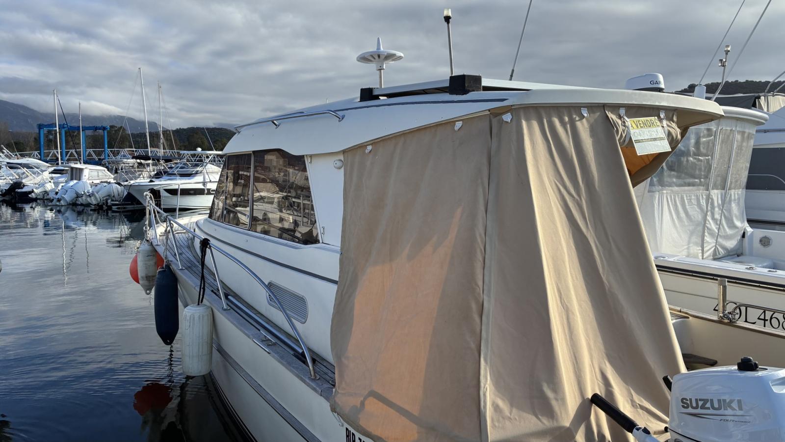 ACM Elite 31 élégante vedette économique avec son YANMAR de 230cv, beau carré confortable et Cabine avec SdB wc. Double commande AV/AR avec propulseur, cuisine équipé avec chauffage Webasto, sellerie refaite à neuf. GPS et pilote AUTO SIMRAD. REPRISE FINANCEMENT Possible. Contact: Olivier 06.14.09.98.41
