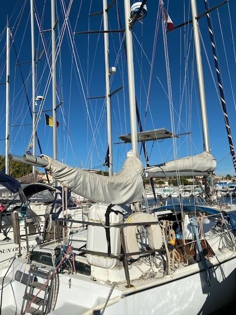 GIB SEA 37 KETCH (GIN FIZZ SLOOP), volumineux, rapide et robuste à été conçu pour la vie à bord et la navigation hauturière apprécié des marins, sur Plans JOUBERT/NIVELT. 2 descentes offrant 2 cabines doubles 7 couchages, grand cockpit central, lest bon marcheur et raide à la toile. Moteur NANNI 50CV installé neuf en 2014(950h). A saisir à PORT MARITIMA – MARTIGUES pour 25 000€
