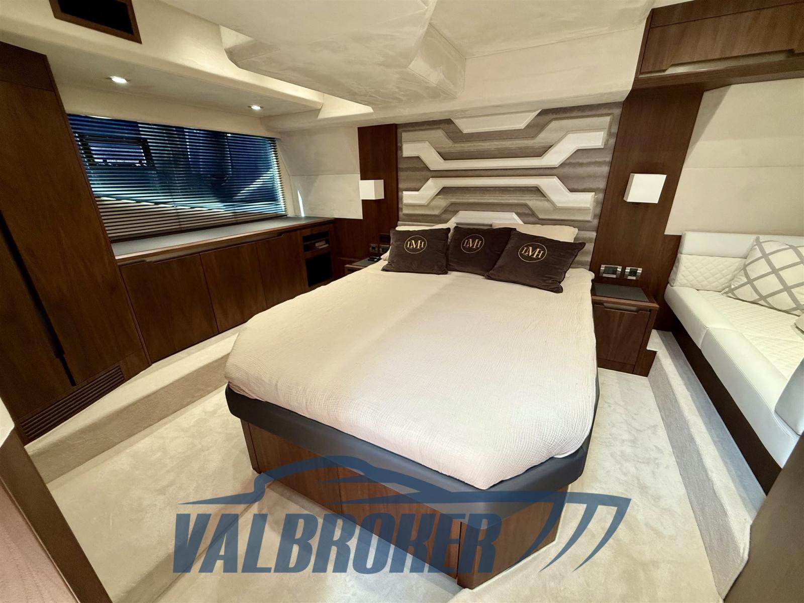 Galeon avec un nouveau design qui tire le meilleur parti de tout l’espace à bord. Finitions de haute qualité, grande habitabilité : cabine du propriétaire pleine poutre au milieu du navire avec de grandes armes-robes, salle de bain attenante avec cabine de douche séparée. Cabine VIP à l’avant avec grand lit double, cabine d’amis côté tribord avec lits superposés. Deuxième salle de bain avec double accès et cabine de douche séparée. Propulsé par 2 turbodiesel Volvo Penta D8 600 V8 dans la ligne d’arbre VDRIVE. EN OPTION : propulseur avant et arrière, climatisation, générateur, garage de tender dégonflé, plateforme de levage pour tender.