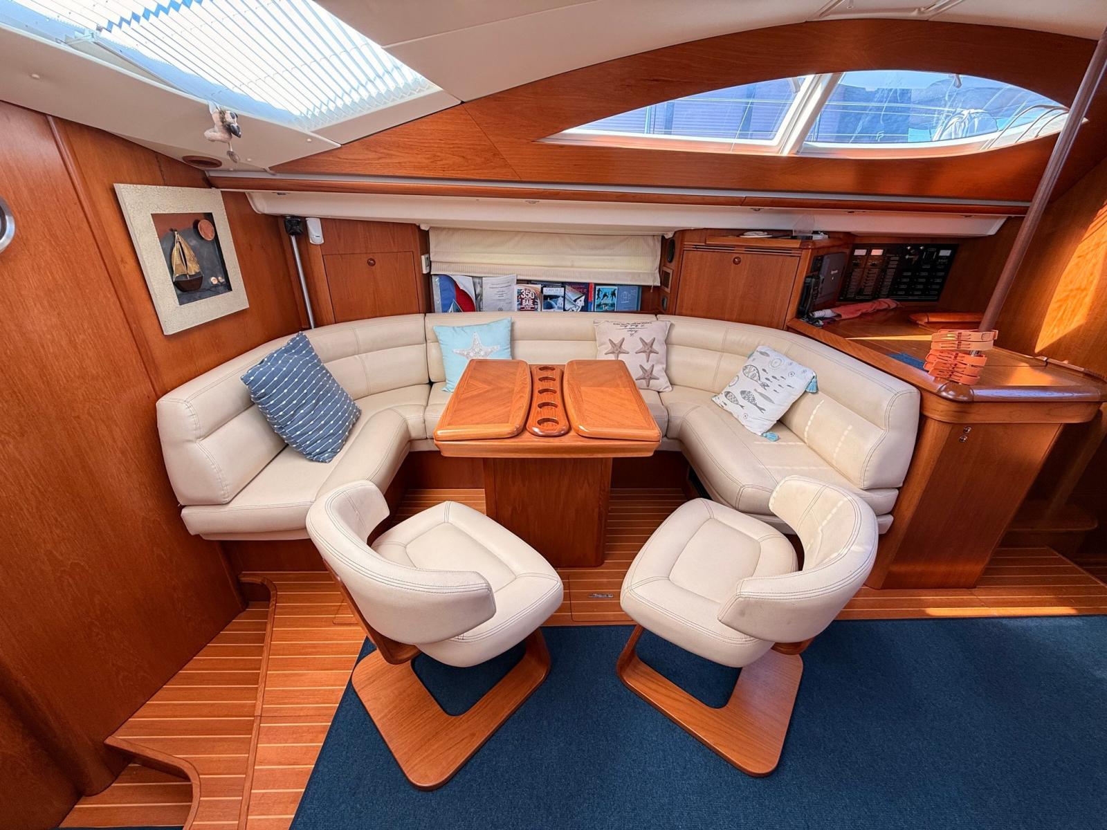 Alarme moteur, Eau sous pression, 6 Batteries, Passavant en teck, Câble d’alimentation à quai, Douche de cockpit, Double barre à roue, Défenses, Passerelle (IDRAULICA), Plateforme arrière, Pompe de cale manuelle, Porte latérale, Cockpit en teck, Prise de quai, Onduleur, Guindeau électrique, Gréement monotoron, Echelle de bain, table de cockpit, 3 Winch.