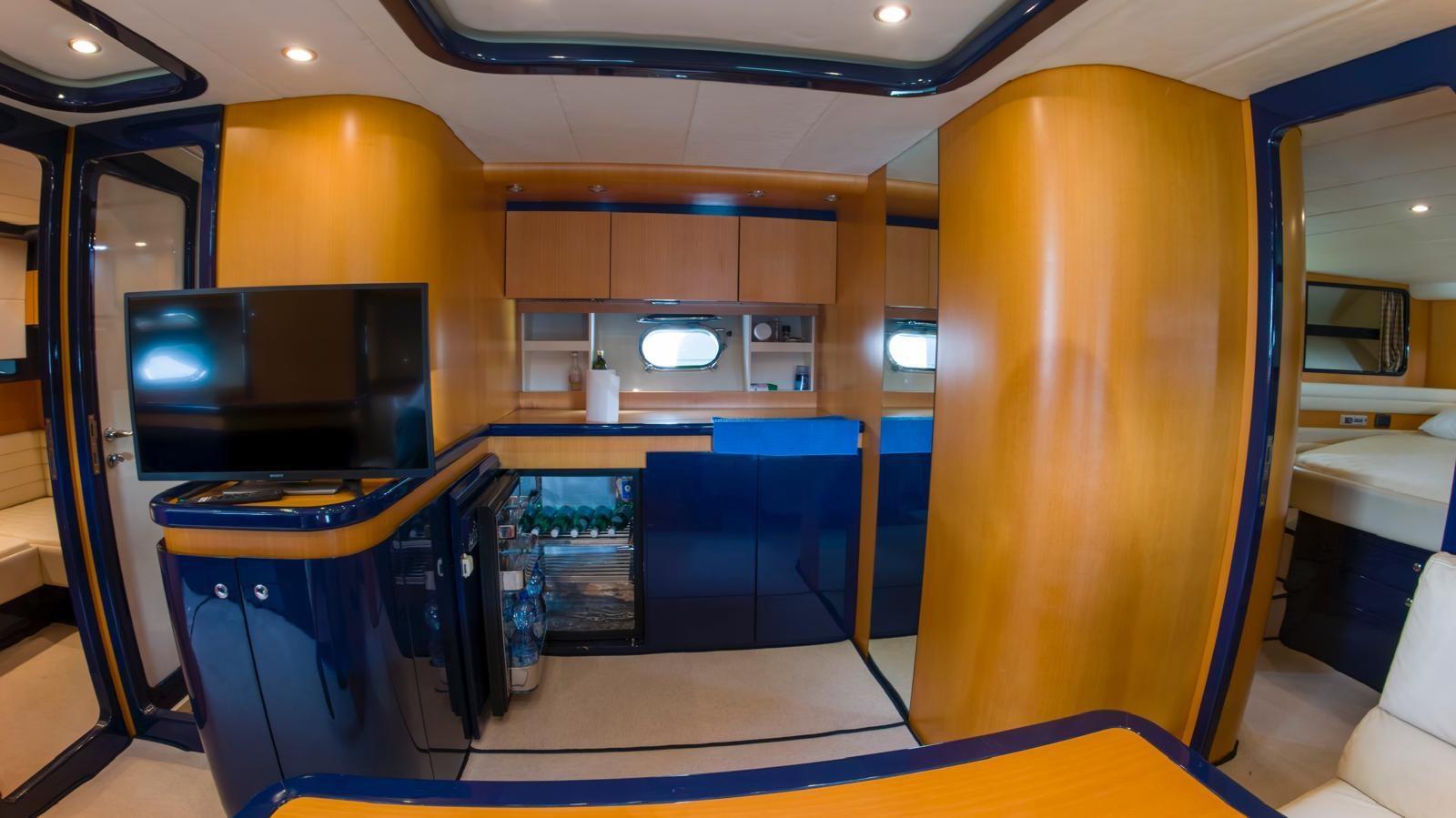 nouvel auvent avec fermetures latérales et arrière - nouveaux coussins intérieurs et externes avec cellules fermées - refonte extraordinaire du générateur - rénovation des marches en teck - refonte extraordinaire de la passerelle Besenzoni avec peinture - nouveau dériveur Sur avec hors-bord - nouveau GPS/traceur Garmin - nouvelle VHF - peinture du tableau de bord - remplacement de la salle des machines insonorisation - nouvelle doublure enveloppante pour la salle de bain arrière des amis et cabine d’équipage - coque à zéro - polissage complet - deux nouveaux radoms peints sur la barre de sécurité - nouveaux essieux et hélices - refonte zéro heure du moteur droit depuis l’atelier officiel MAN - Système audio Fusion avec 8 haut-parleurs - peinture de la table du cockpit.