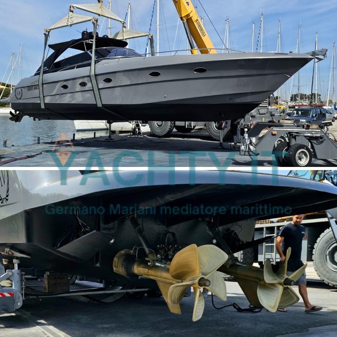 Eau sous pression, Câble d’alimentation à quai, Couleur spéciale, Douche de cockpit, Flaps électriques, Garage à annexe (completo di verricello e compressore per gommone), Extincteur(s) fixe(s), Lavage de chaine, Lavabo dans le cockpit, Éclairage de courtoisie, Moteur hors-bord pour annexe (Mercury 3.5), Passerelle (idraulica), Plateforme arrière (con teak), Pompe de cale automatique, Pompe de cale manuelle, Cockpit en teck, Prise de quai, Rollbar, Guindeau électrique, Echelle de bain, table de cockpit, Annexe, Corne.