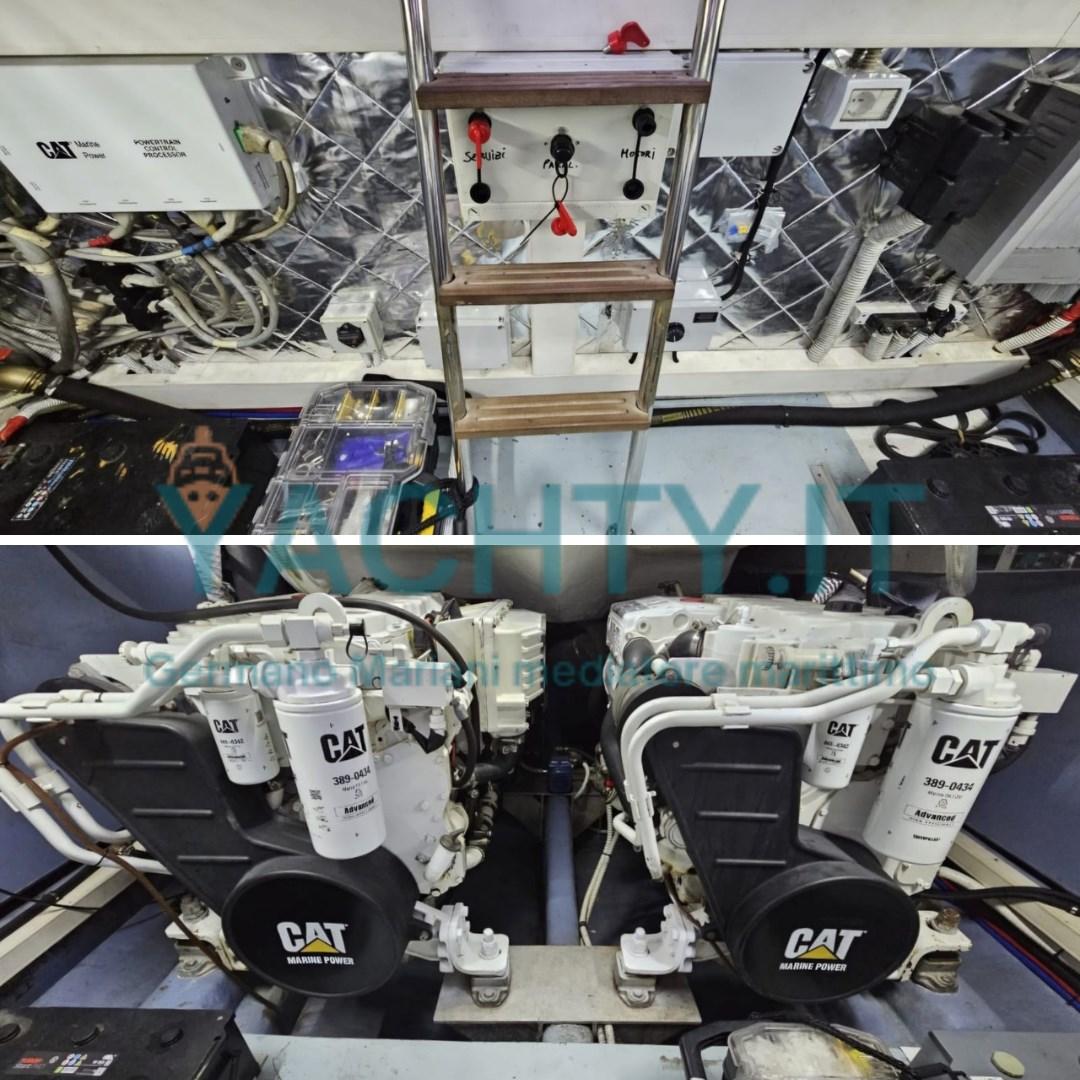 Disposition avec 3 cabines, 2 salles de bain, salle à manger, double cuisine (intérieur + extérieur). Tender de garage avec nouveaux pistons électriques, treuil électrique et compresseur dédié.